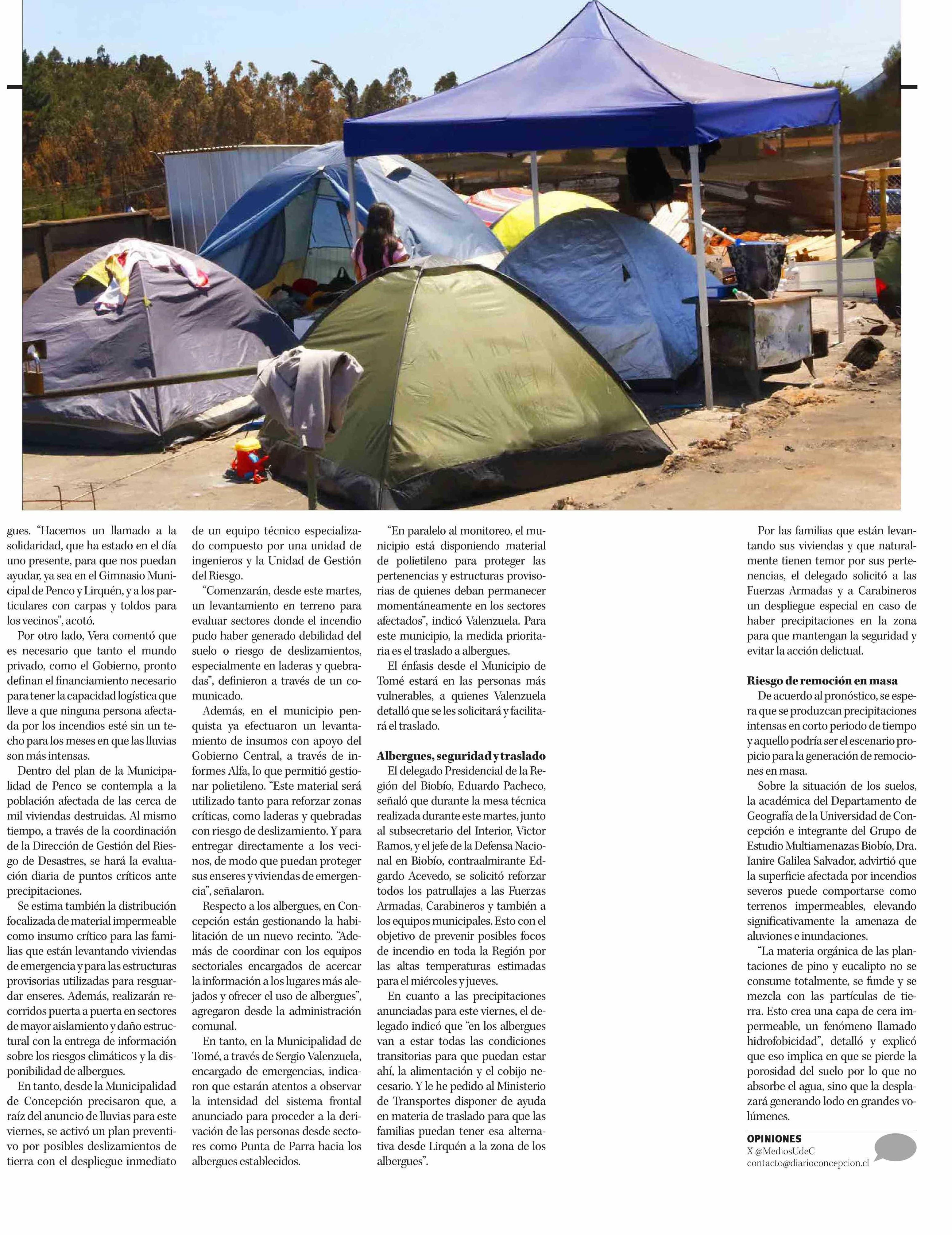 Título: Activan planes de resguardo para afectados por incendios ante pronóstico de sistema frontal