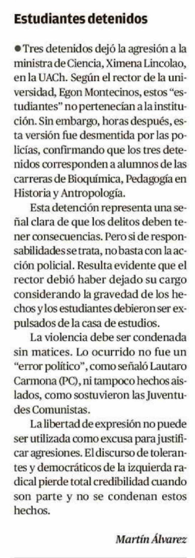 Cartas: Estudiantes detenidos 21-04-2026 El Llanquihue |