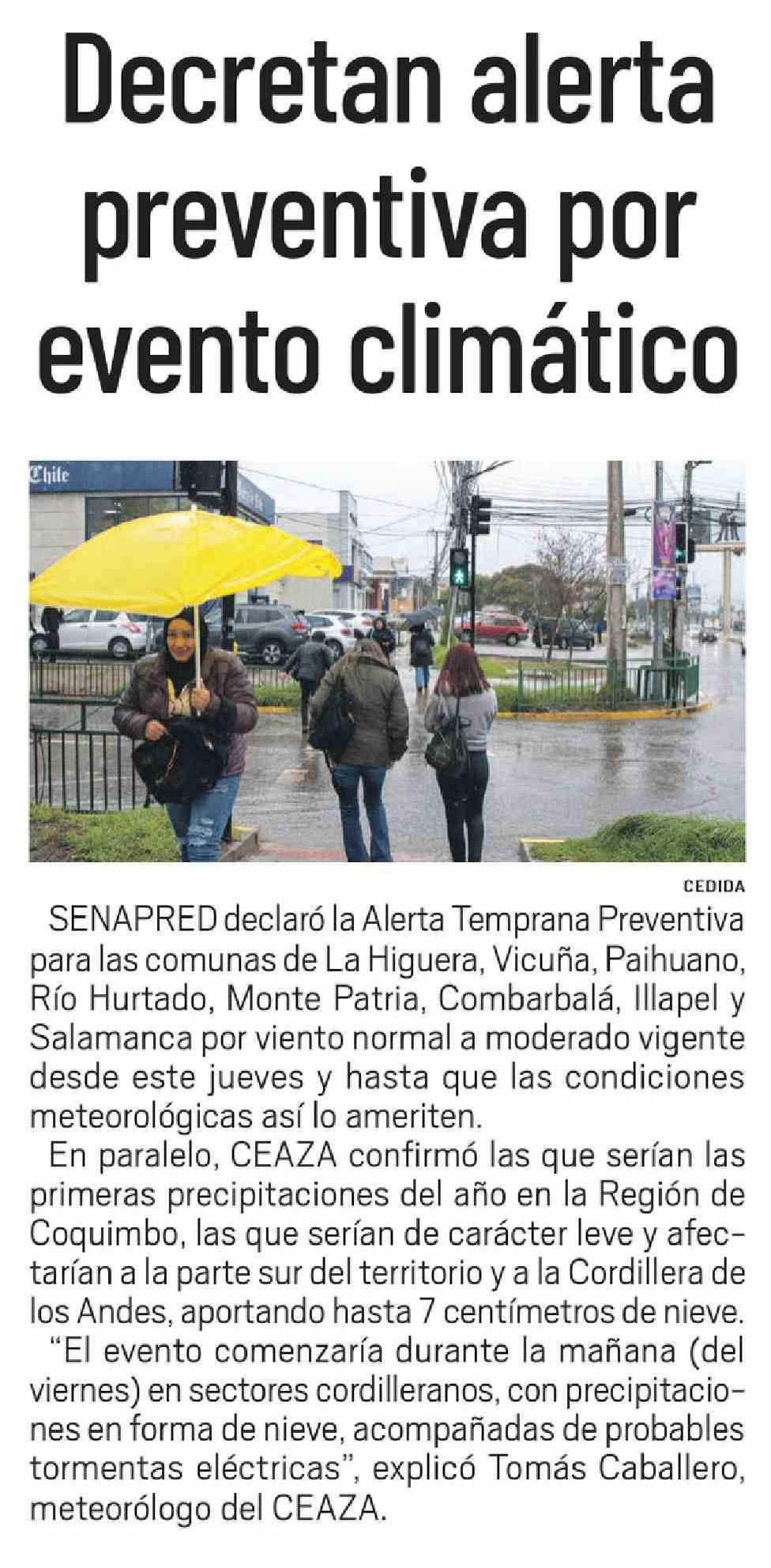 Título: Decretan alerta preventiva por evento climático