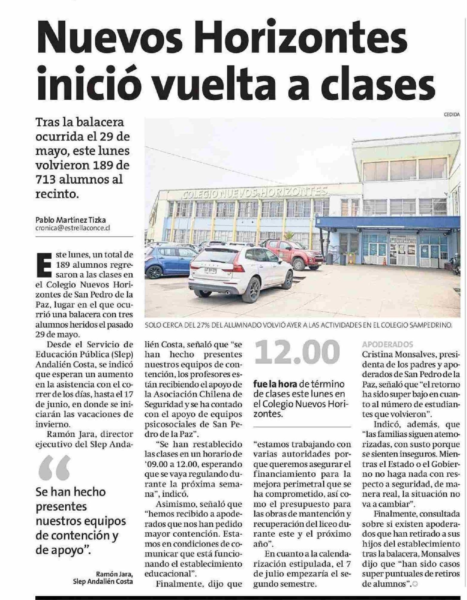 Nuevos Horizontes inició vuelta a clases 10-06-2025 La Estrella de Concepción |