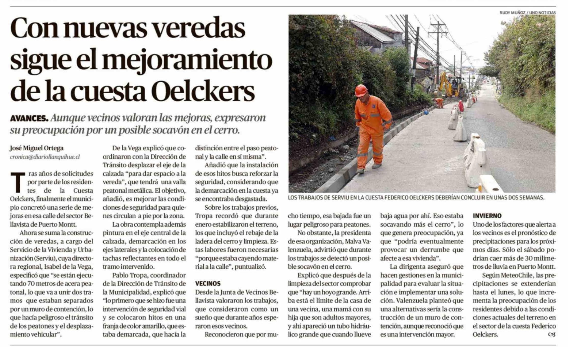 Con nuevas veredas sigue el mejoramiento de la cuesta Oelckers 13-03-2026 El Llanquihue |