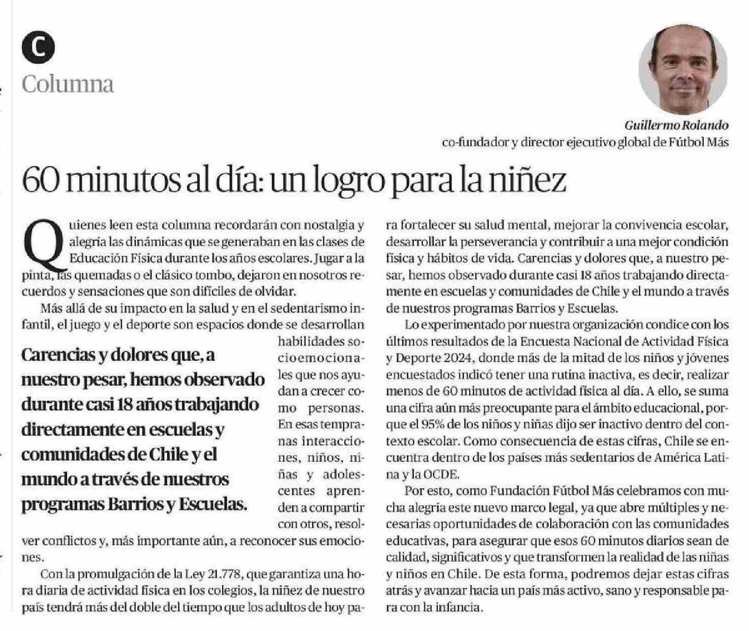 Columnas de Opinión: 60 Minutos al día: un logro para la niñez 18-01-2026 El Diario de Atacama |