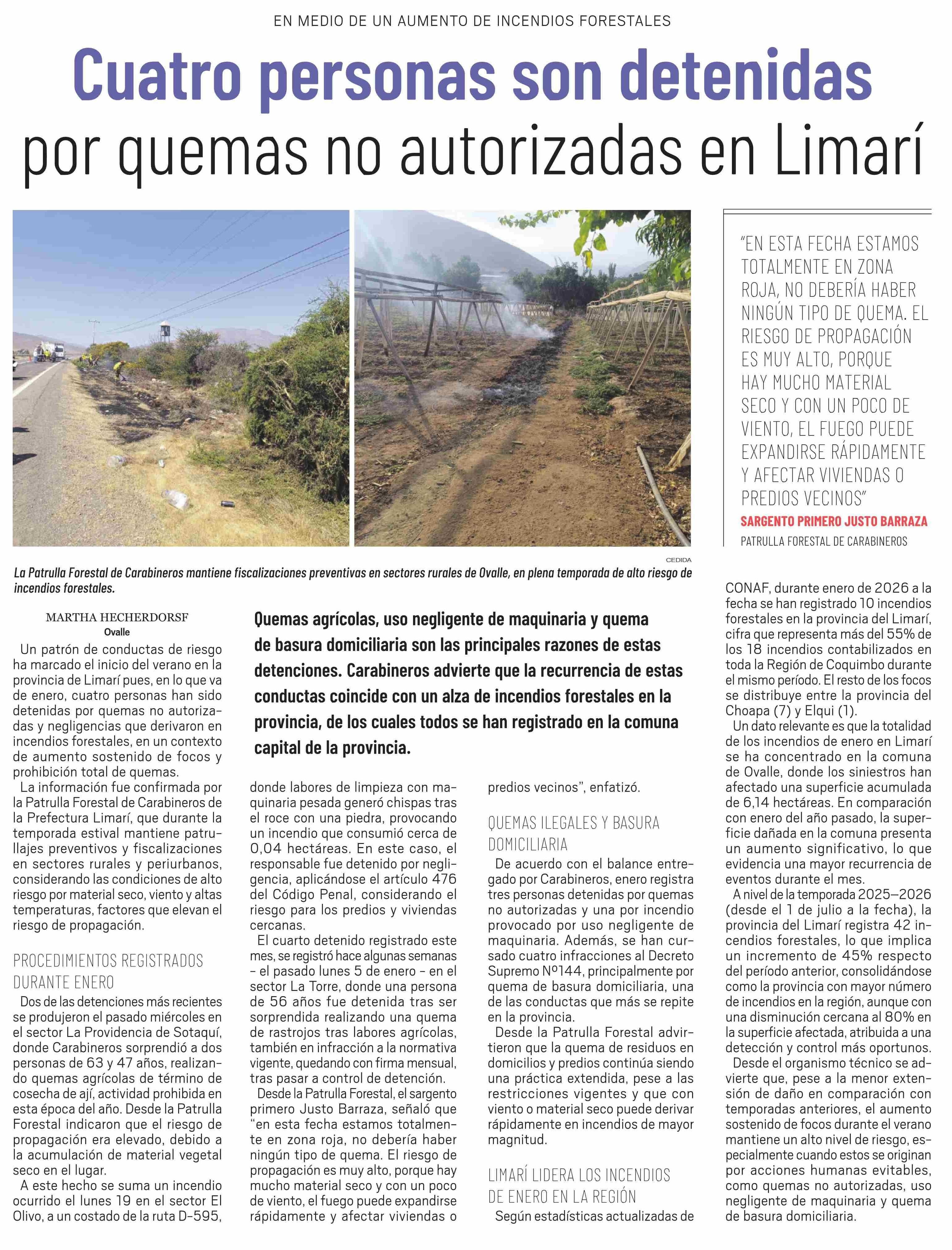 Título: Cuatro personas son detenidas por quemas no autorizadas en Limarí