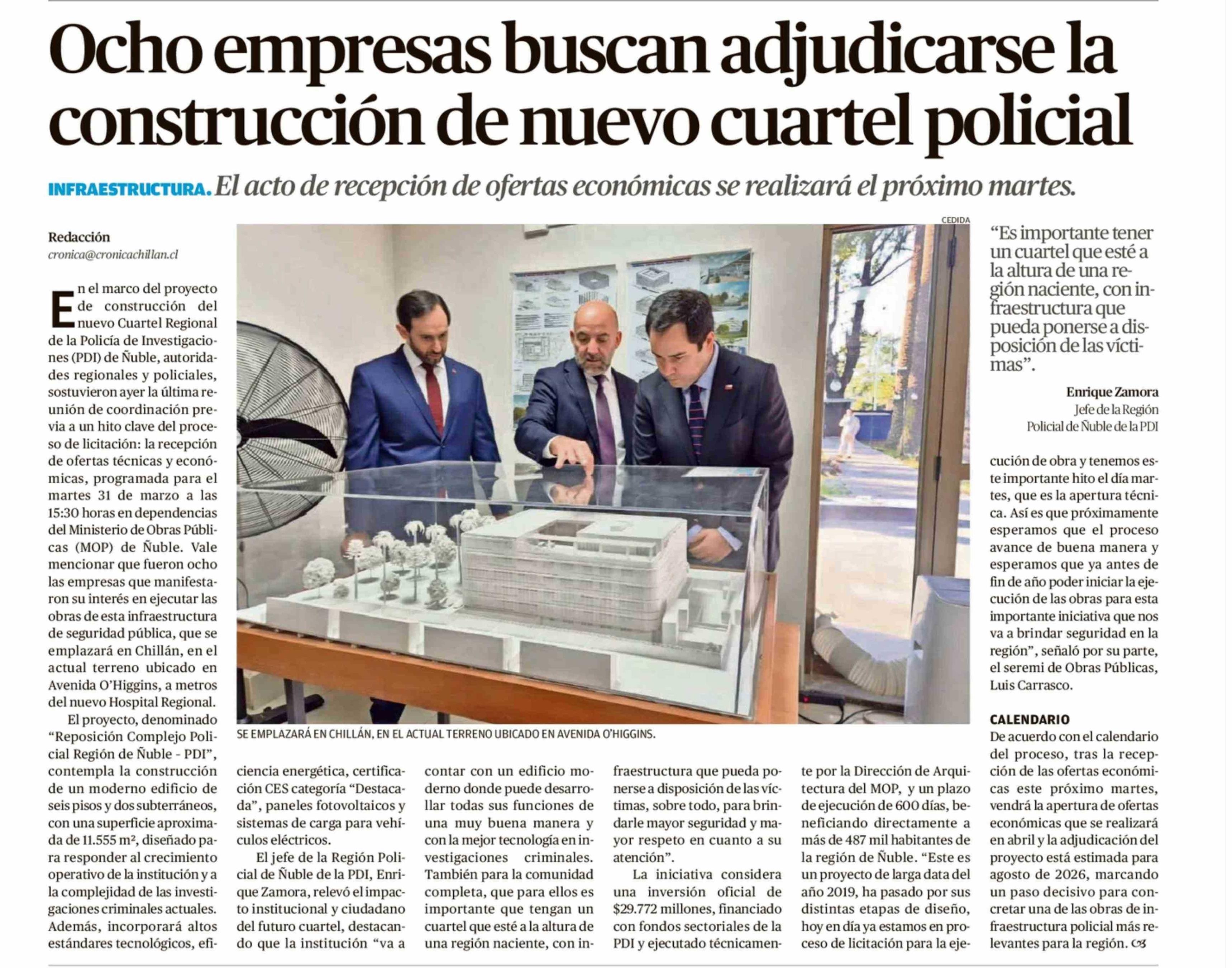 Ocho empresas buscan adjudicarse la construcción de nuevo cuartel policial 28-03-2026 Crónica de Chillán |