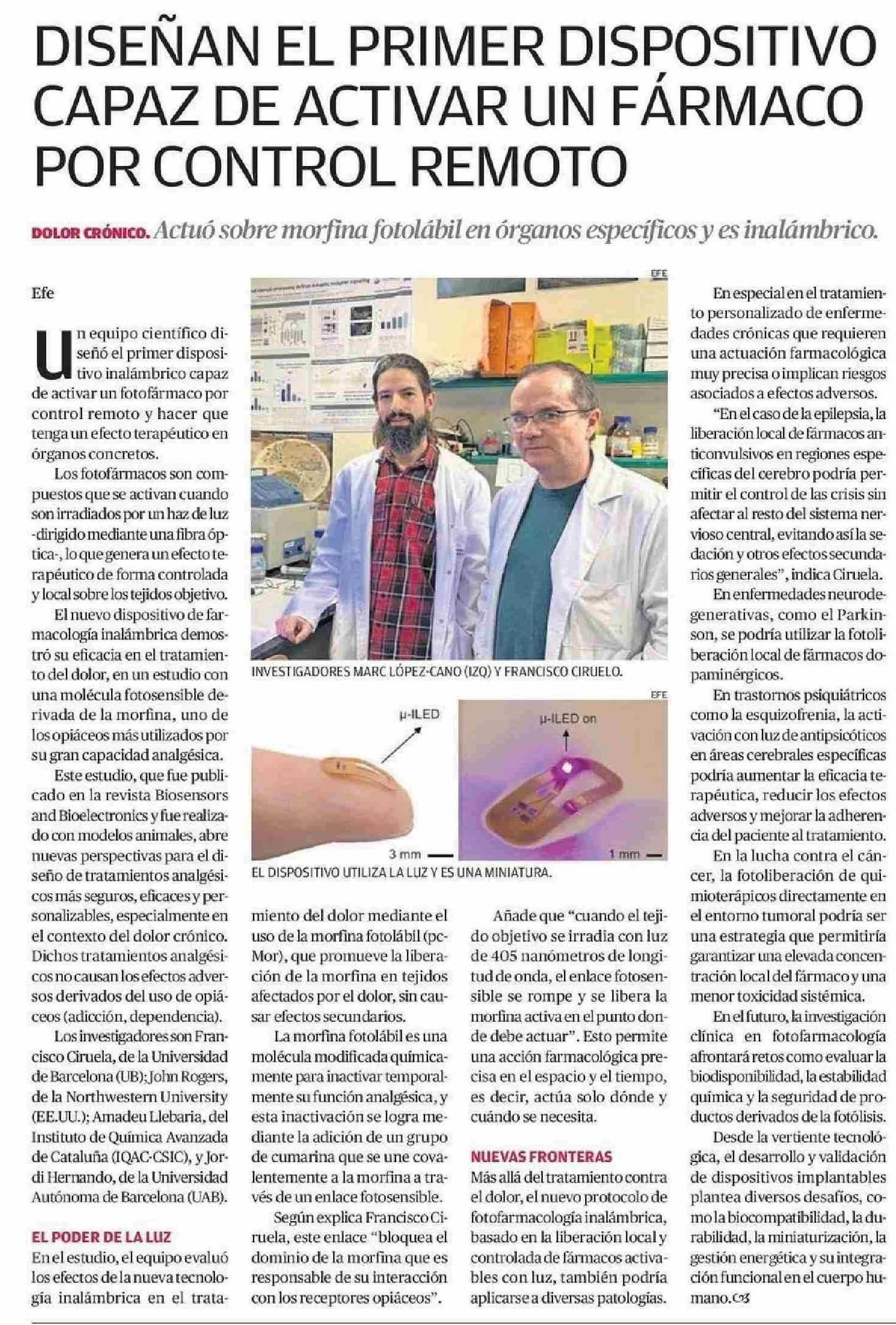 DISEÑAN EL PRIMER DISPOSITIVO CAPAZ DE ACTIVAR UN FARMACO POR CONTROL REMOTO 09-05-2025 El Mercurio de Antofagasta |