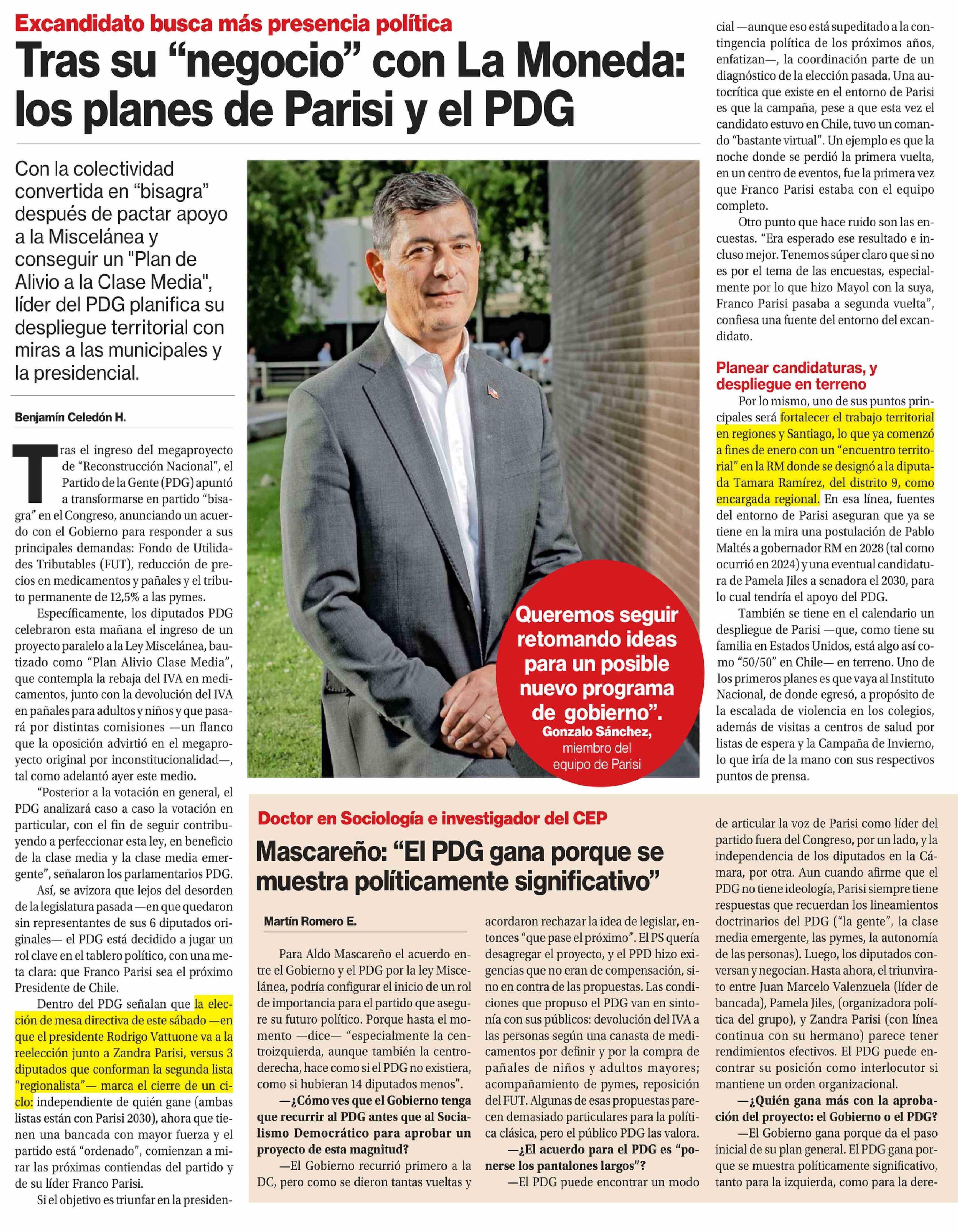 Título: Tras su "negocio" con La Moneda: los planes de Parisi y el PDG