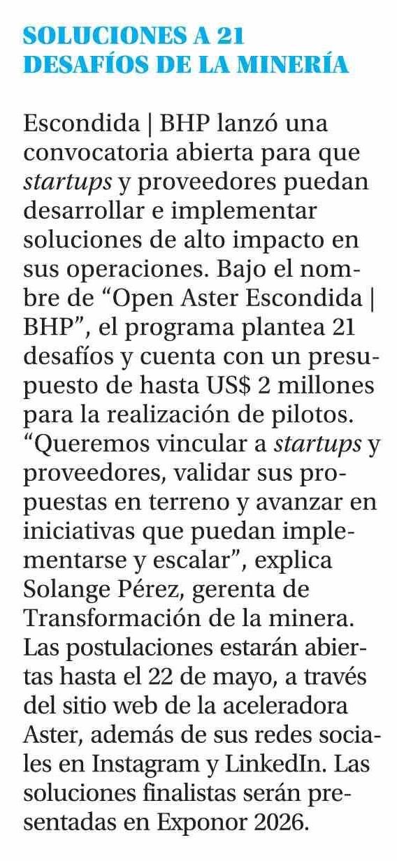 SOLUCIONES A 21 DESAFÍOS DE LA MINERÍA 16-04-2026 El Mercurio |