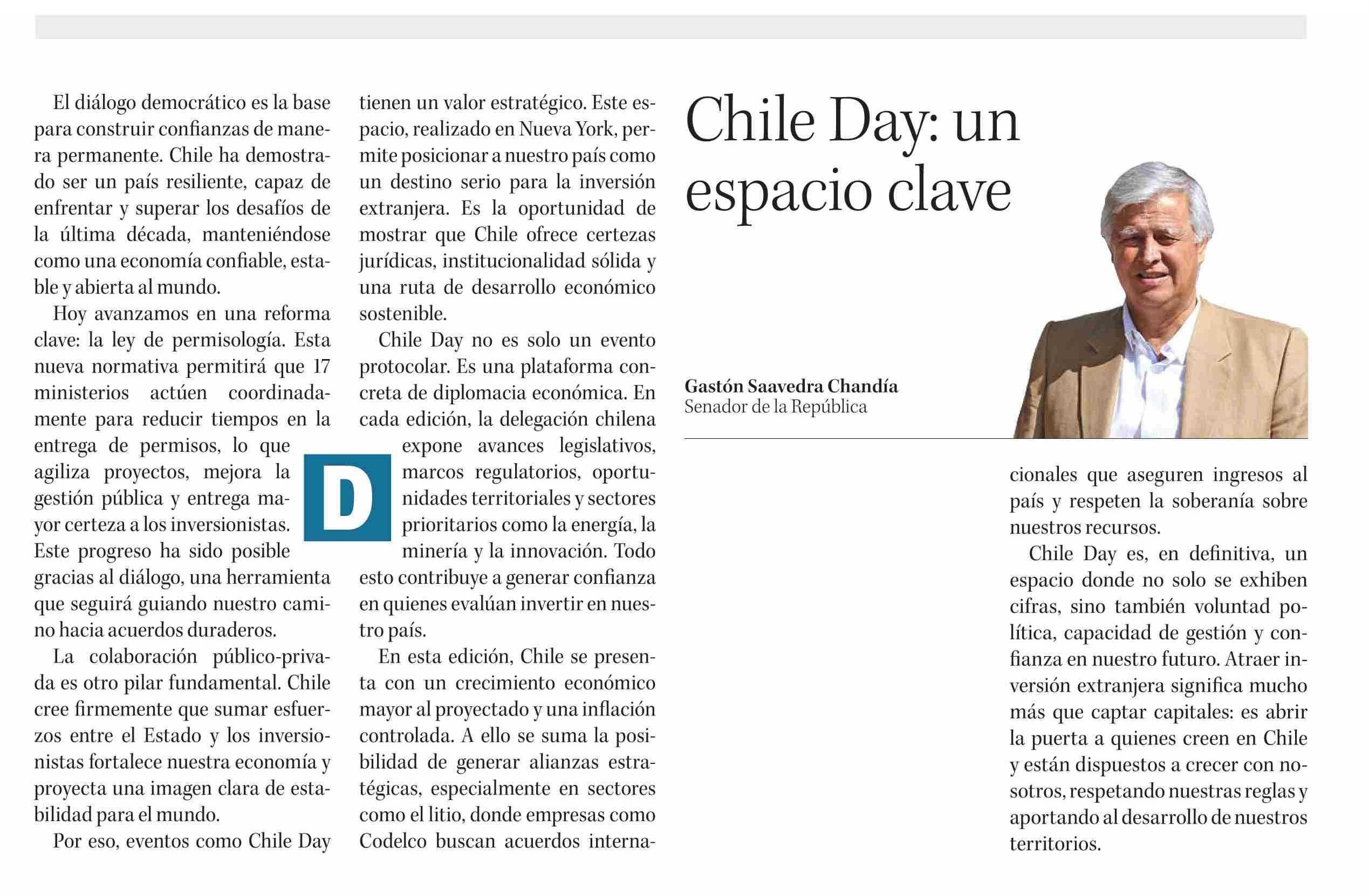 | Título: | COLUMNAS DE OPINIÓN: Chile Day: un espacio clave |