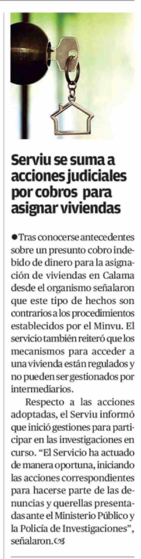 Serviu se suma a acciones judiciales por cobros para asignar viviendas 07-03-2026 El Mercurio de Antofagasta |