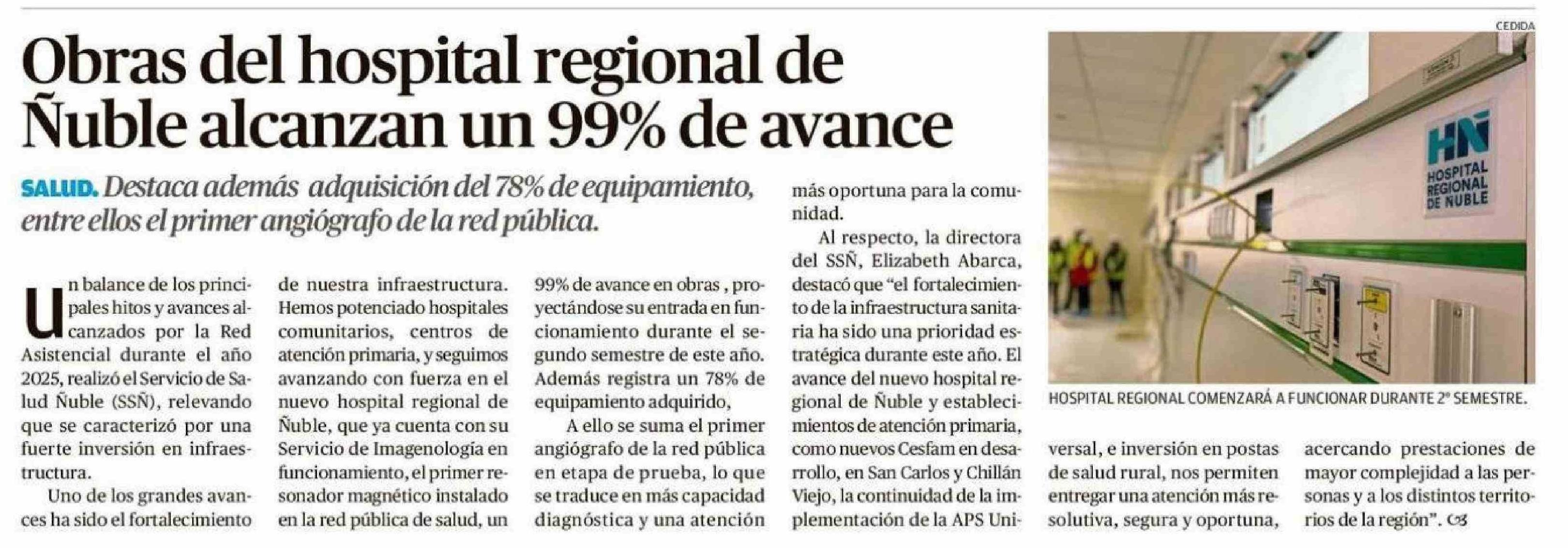 Obras del hospital regional de Ñuble alcanzan un 99% de avance 05-01-2026 Crónica de Chillán |