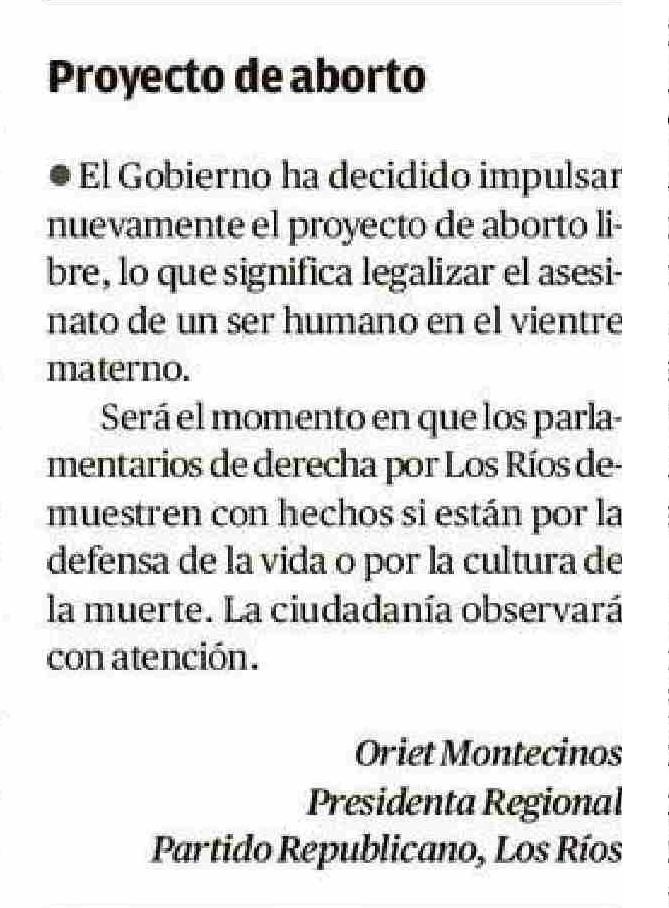 COLUMNAS DE OPINIÓN: Proyecto de aborto 29-05-2025 Diario Austral Región de Los Ríos |
