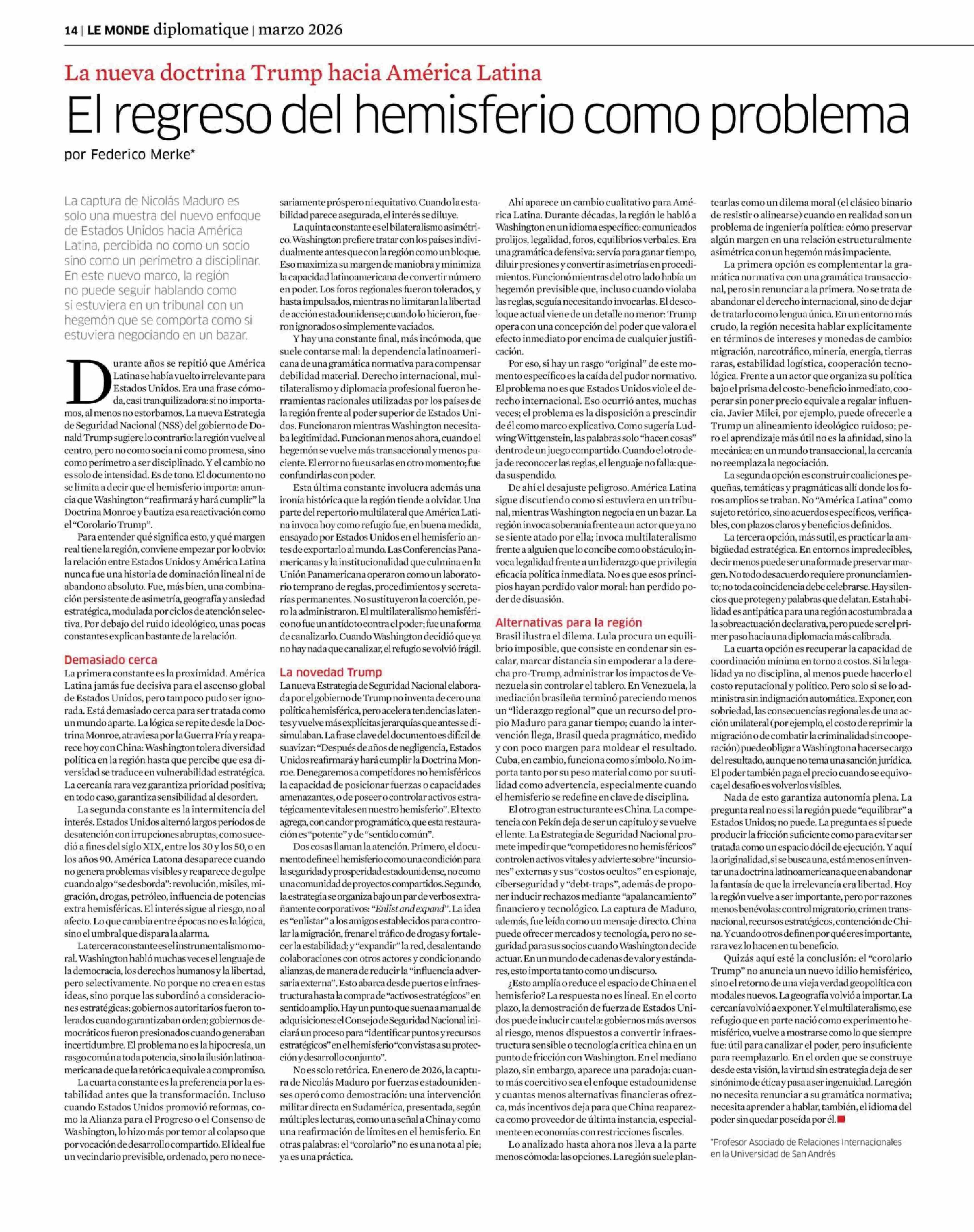 El regreso del hemisferio como problema 02-03-2026 Le Monde Diplomatique |