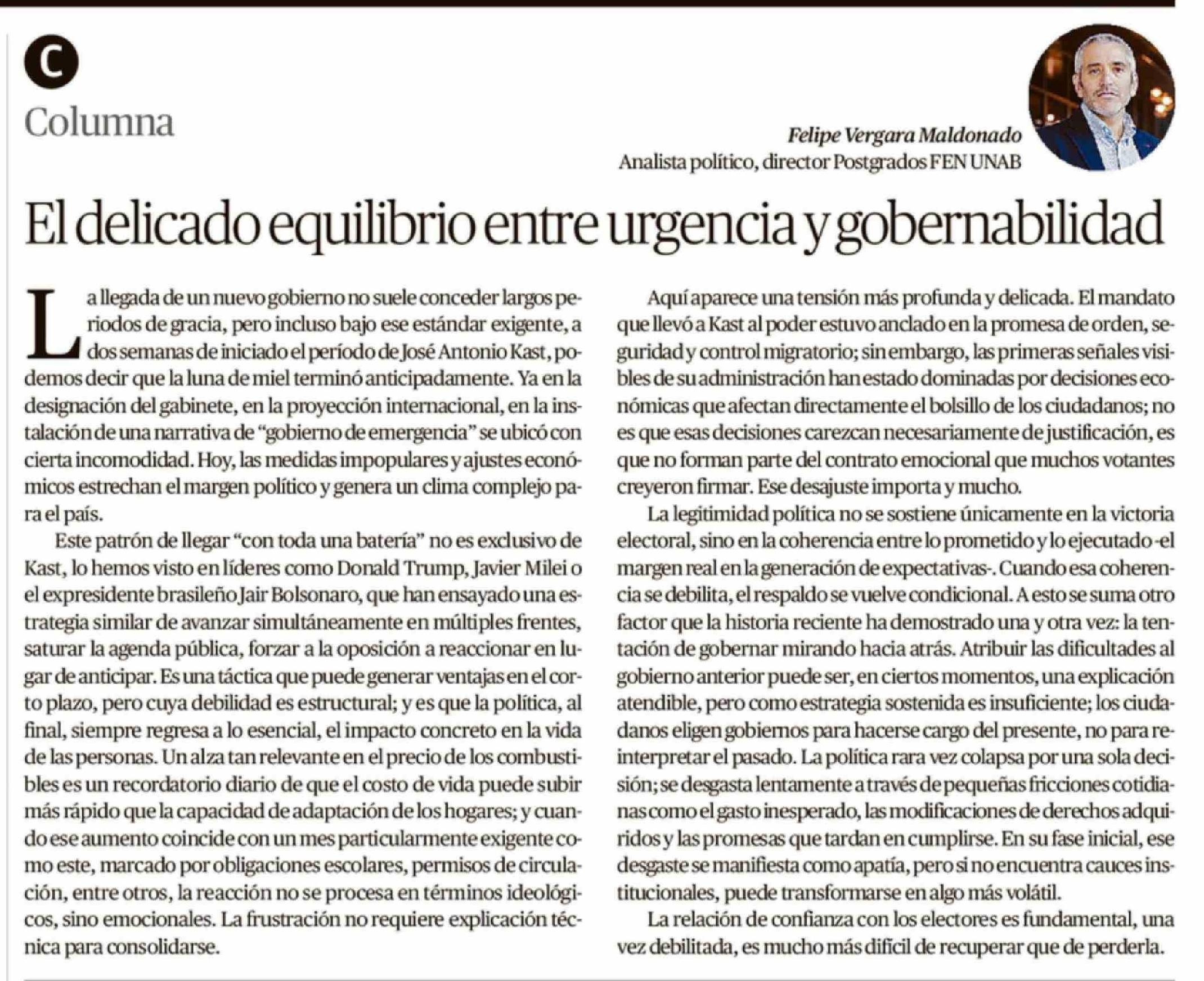 Título: El delicado equilibrio entre urgencia y gobernabilidad