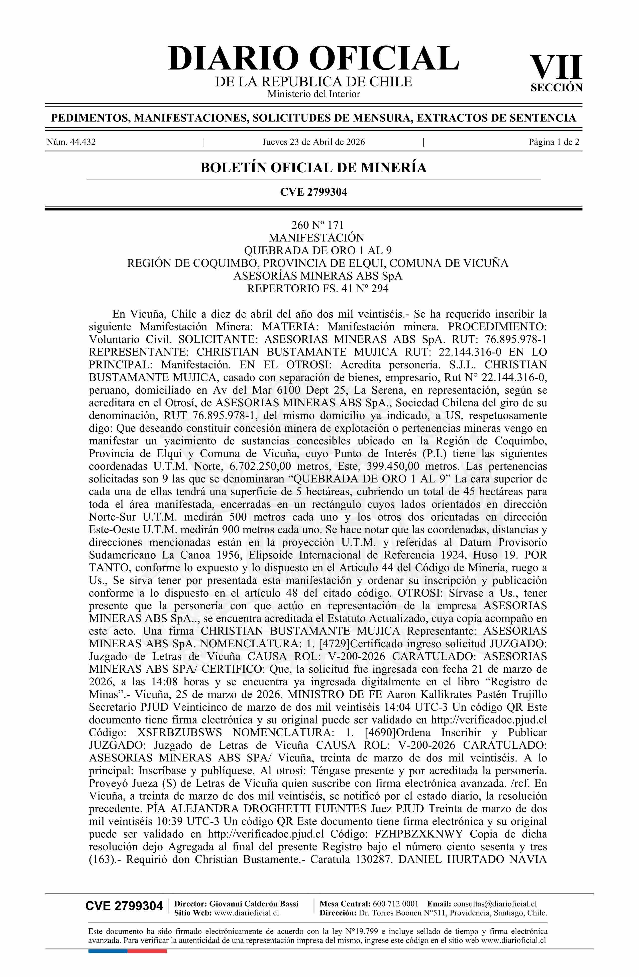 23-04-2026 DIARIO OFICIAL CHILE - BOLETÍN OFICIAL DE MINERÍA
