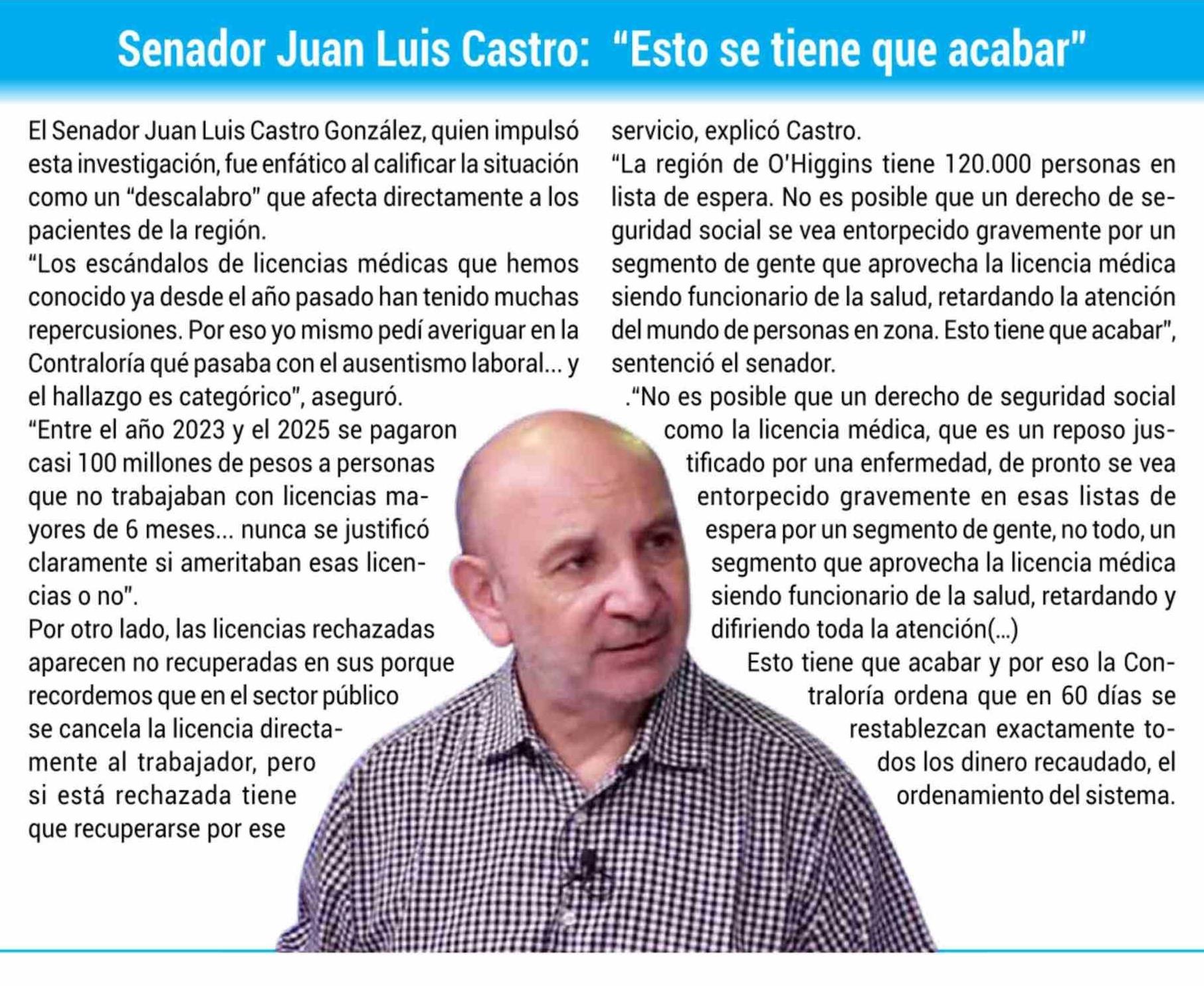 Senador Juan Luis Castro: "Esto se tiene que acabar" 05-02-2026 El Rancagüino |
