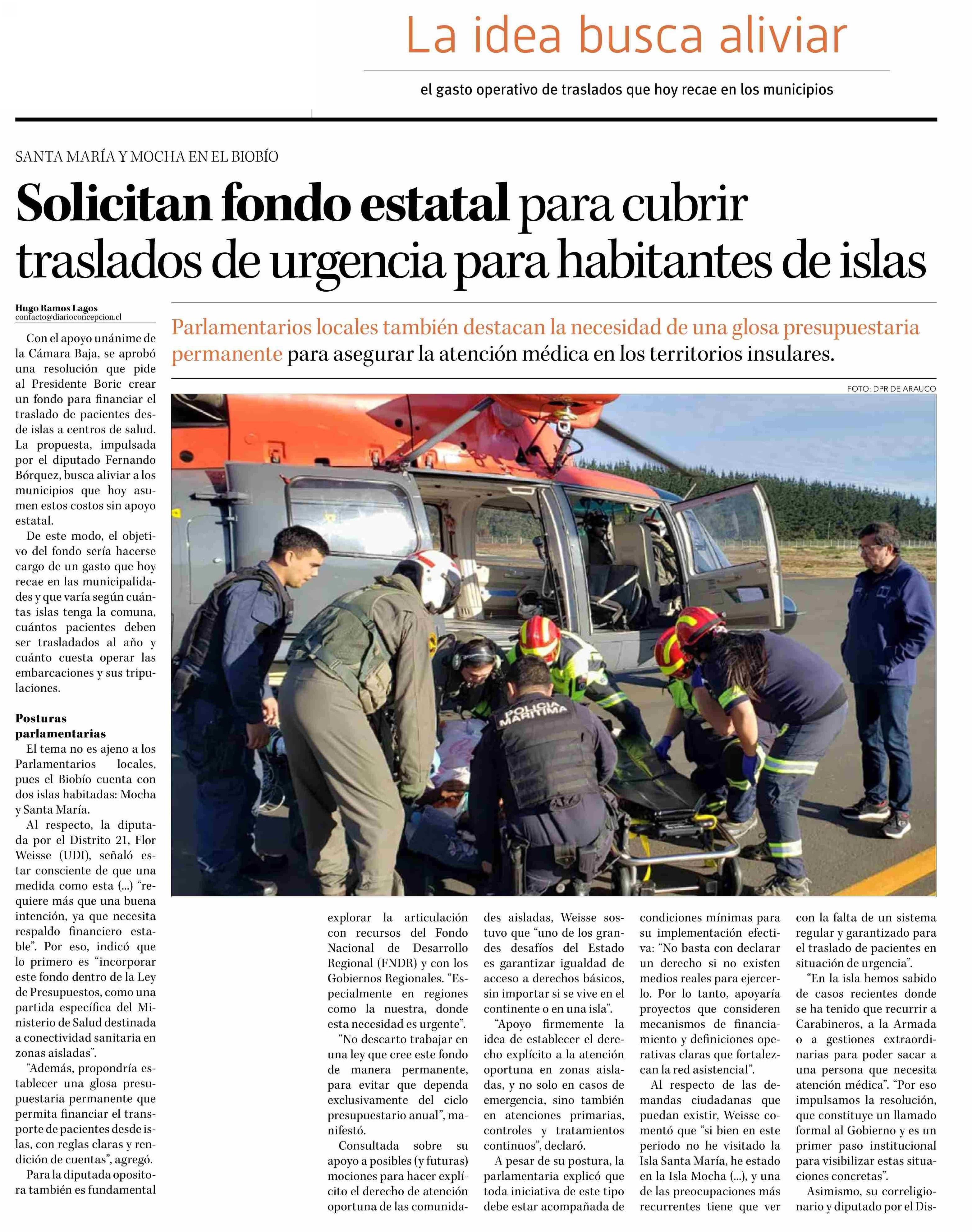 Solicitan fondo estatal para cubrir traslados de urgencia para habitantes de islas 08-06-2025 Diario Concepción |