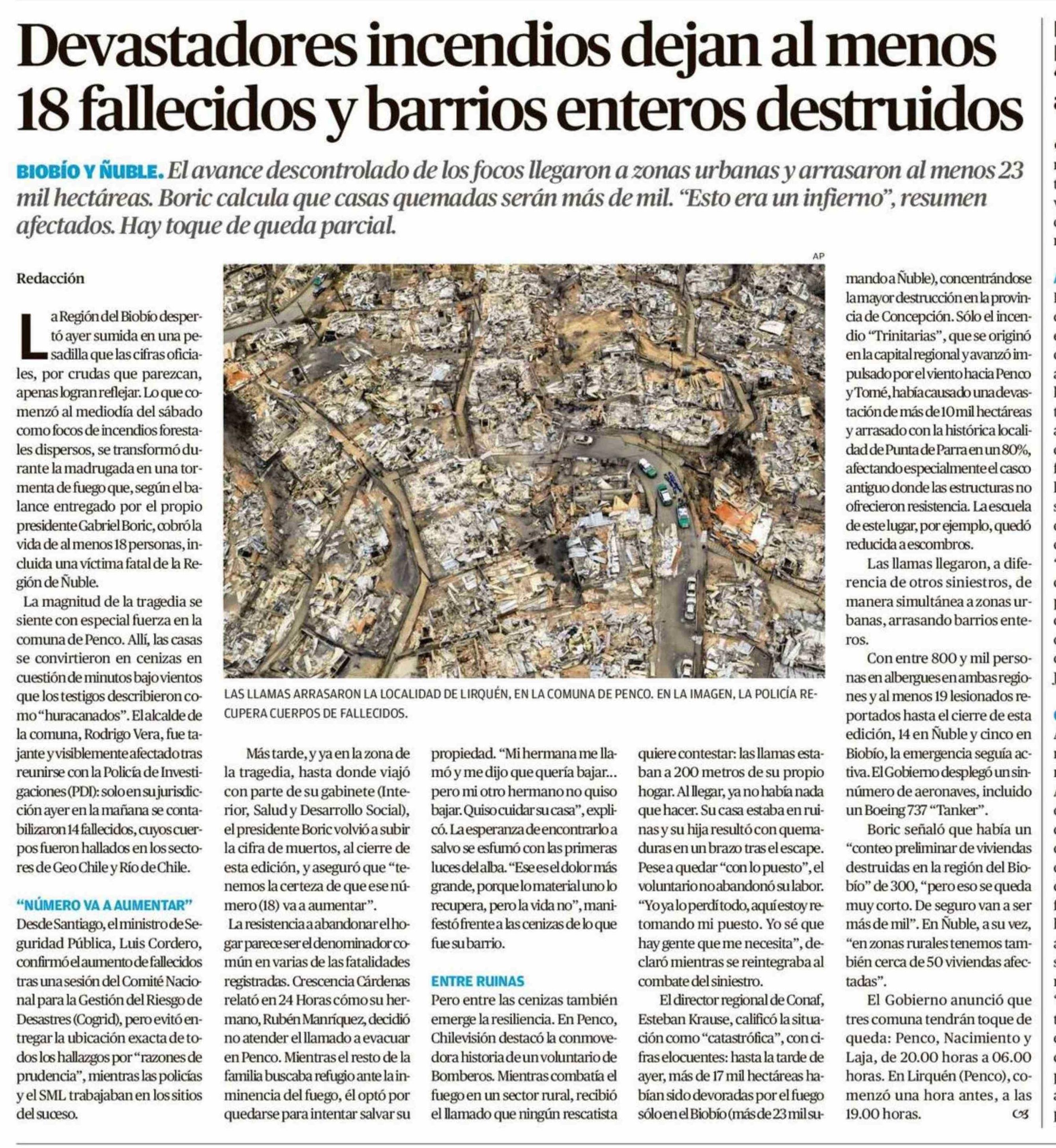 Devastadores incendios dejan al menos 18 fallecidos y barrios enteros destruidos 19-01-2026 El Austral de la Araucanía |