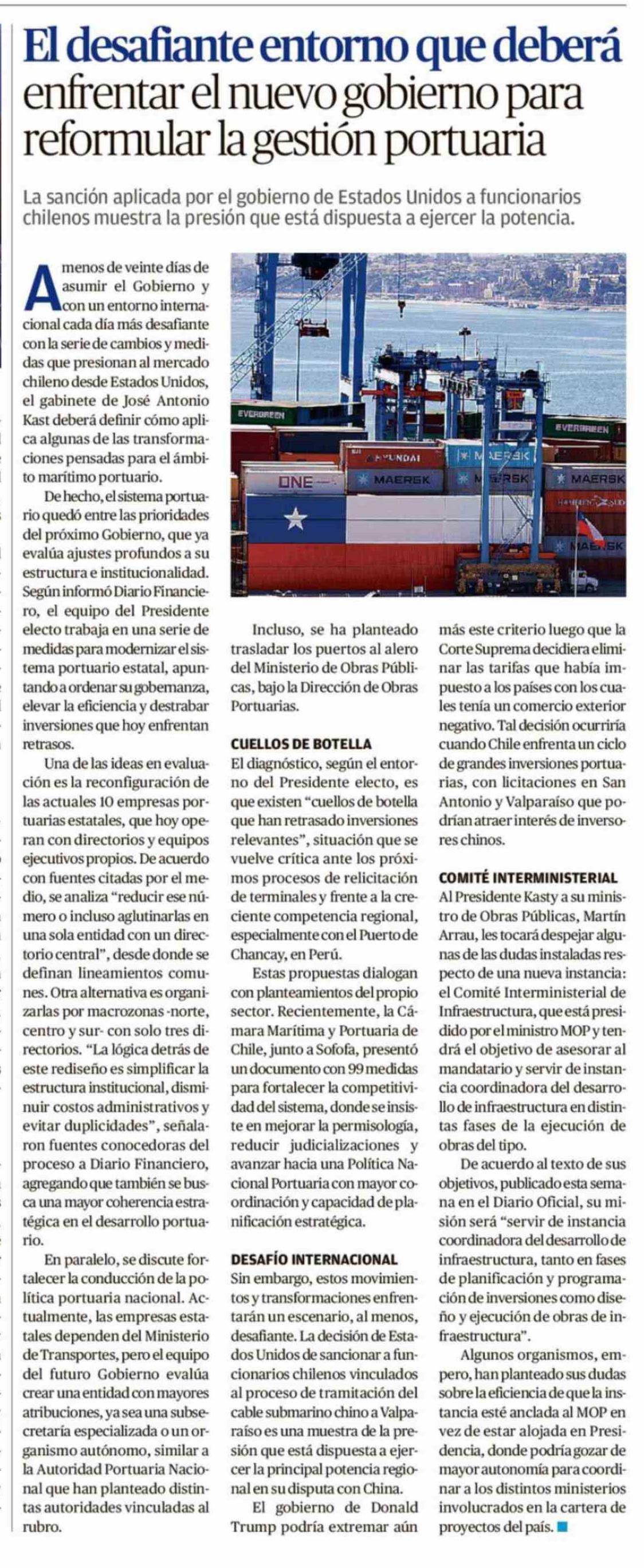 Título: El desafiante entorno que deberá enfrentar el nuevo gobierno para reformular la gestión portuaria
