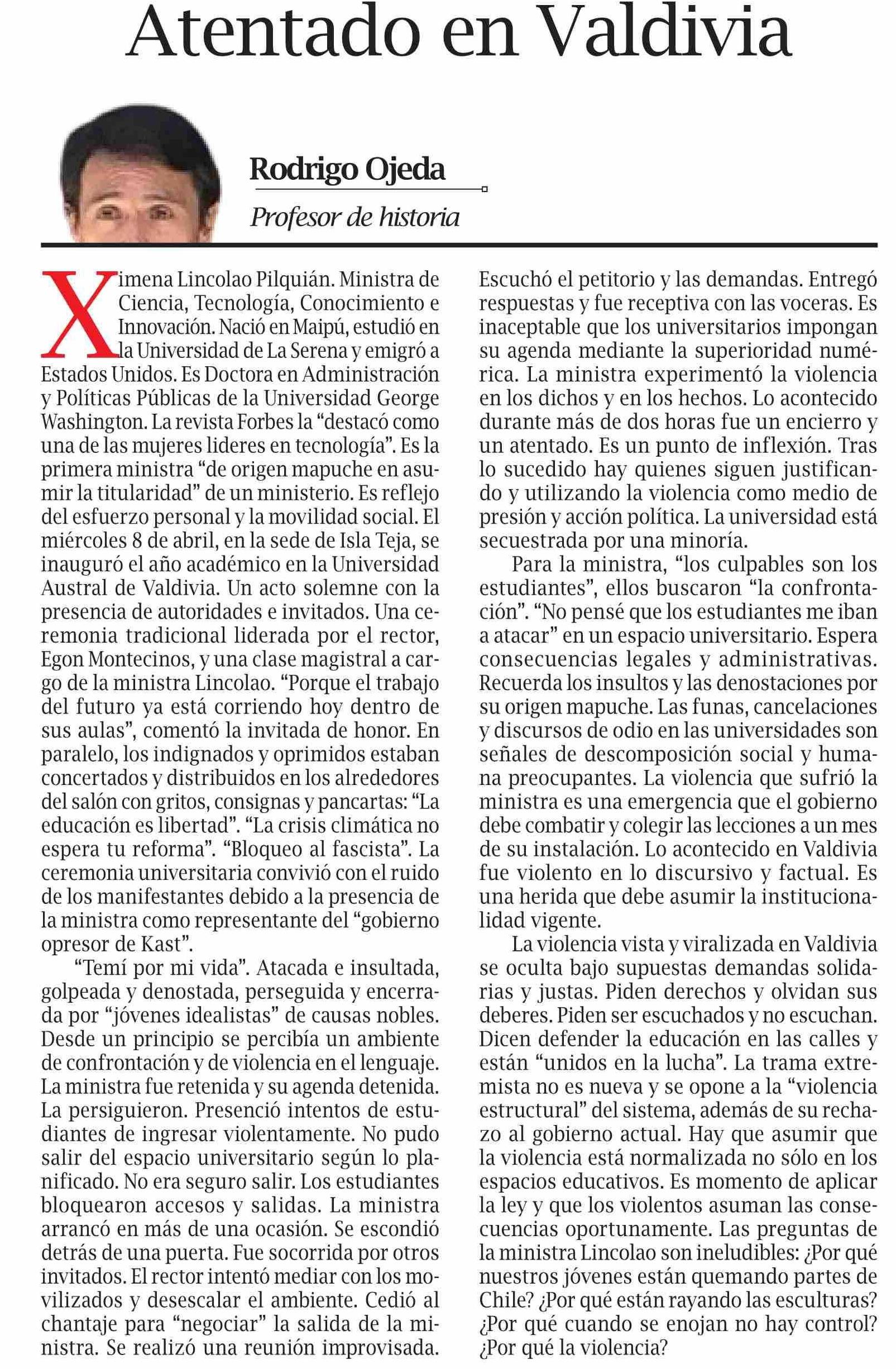 | Título: | COLUMNAS DE OPINIÓN: Atentado en Valdivia |