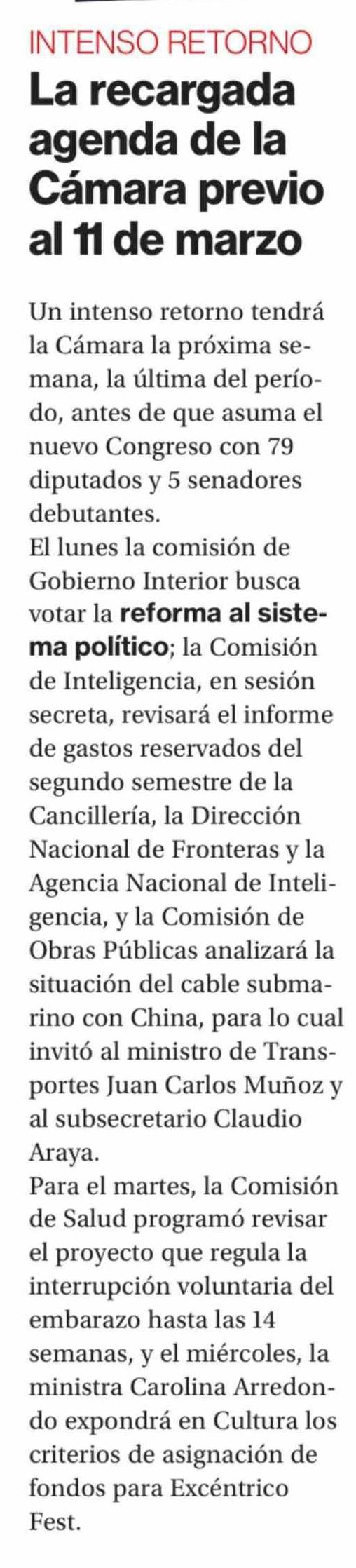 Título: La recargada agenda de la Cámara previo al 11 de marzo