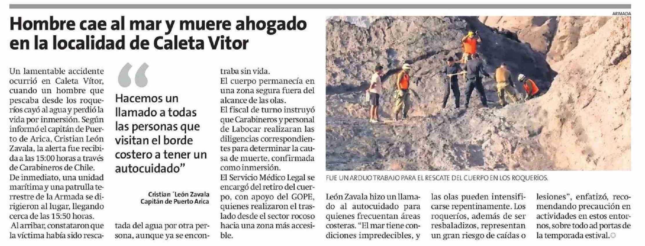 Hombre cae al mar y muere ahogado en la localidad de Caleta Vitor 28-11-2024 La Estrella de Arica |