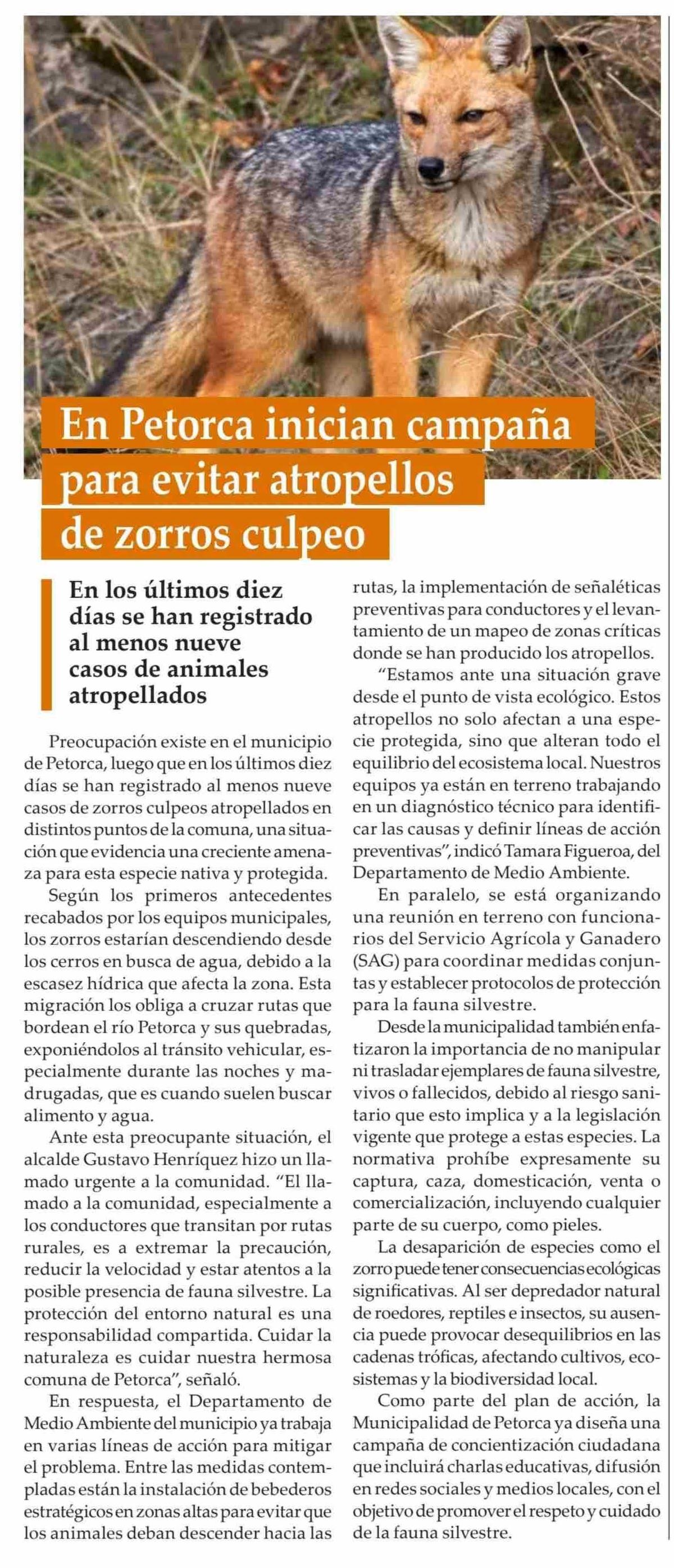 Título: En Petorca inician campaña para evitar atropellos de zorros culpeo