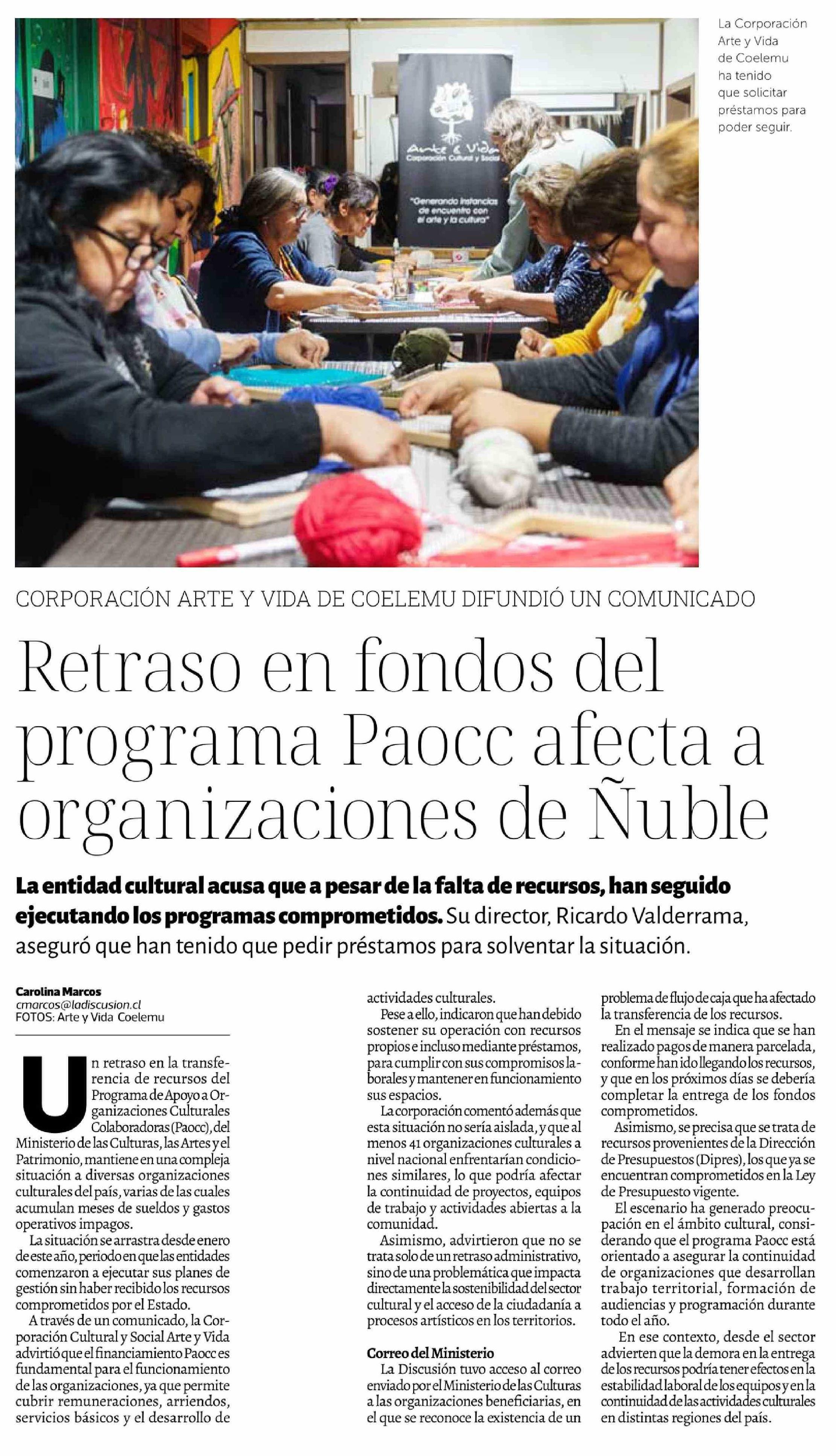 Retraso en fondos del programa Paocc afecta a organizaciones de Nuble 21-03-2026 La Discusión |