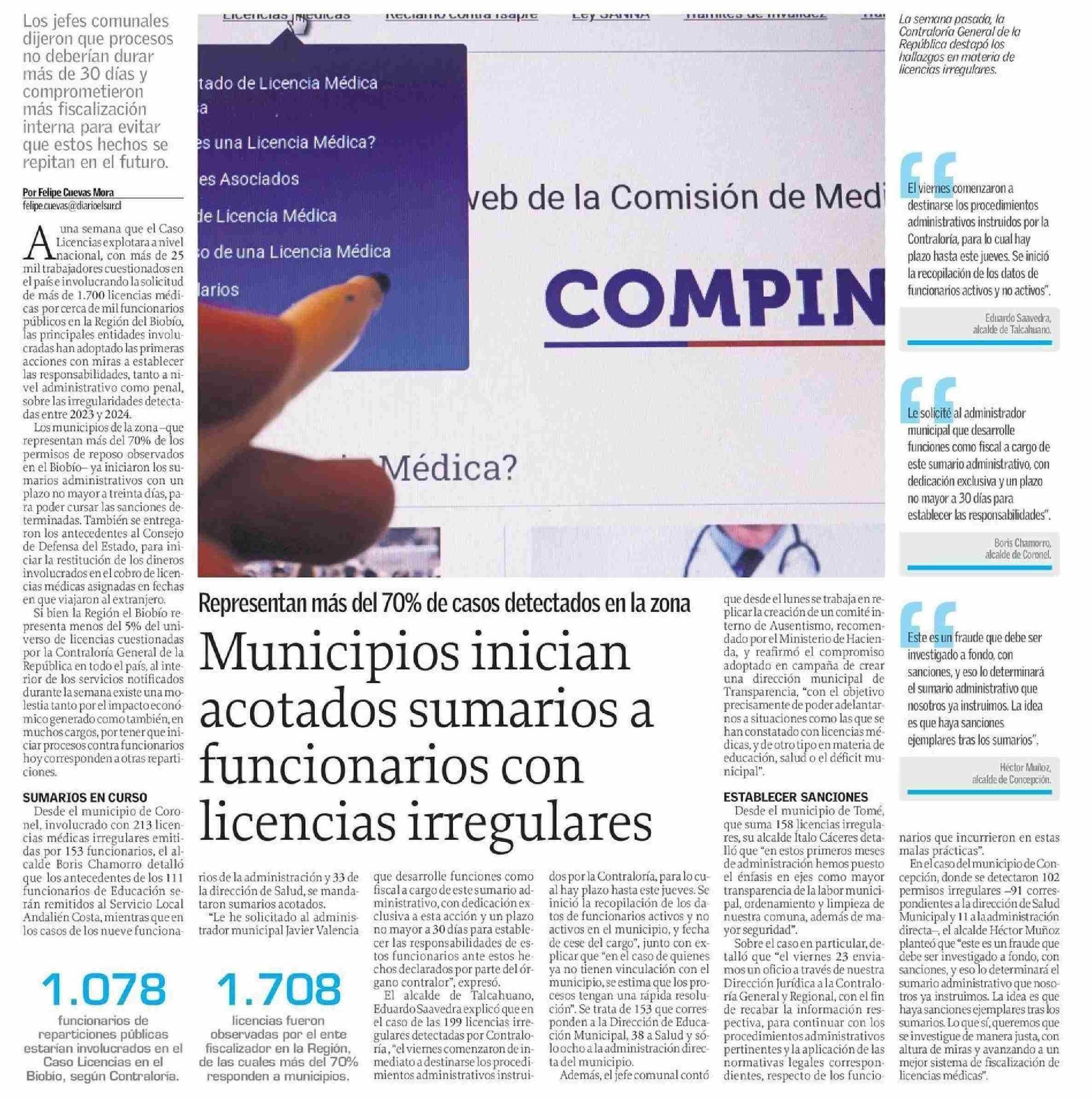Municipios inician acotados sumarios a funcionarios con licencias irregulares 28-05-2025 El Sur |