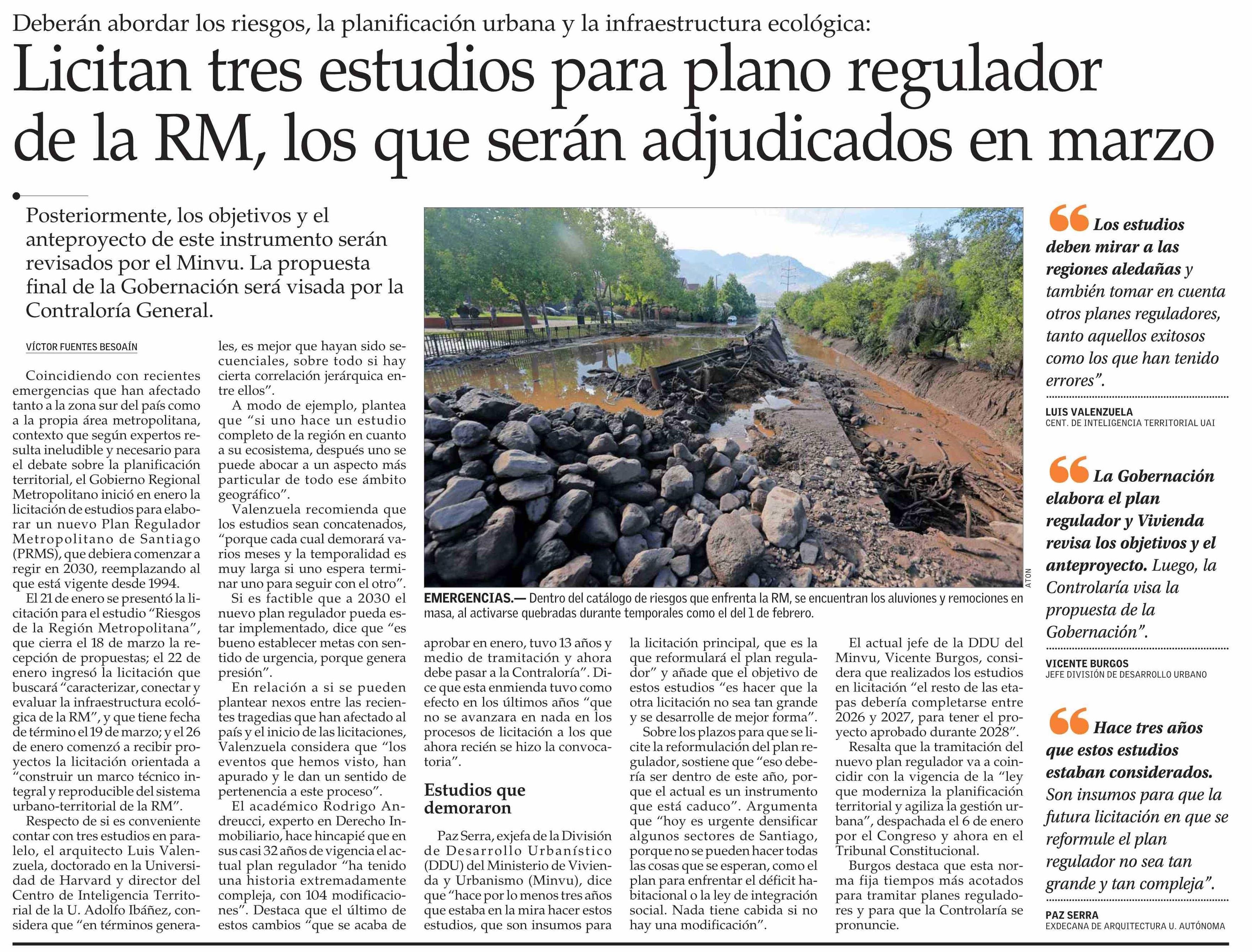 Título: Licitan tres estudios para plano regulador de la RM, los que serán adjudicados en marzo