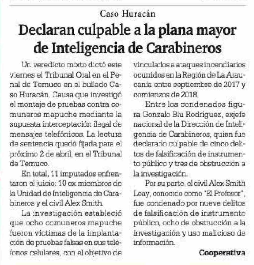 | Título: | Declaran culpable a la plana mayor de Inteligencia de Carabineros |