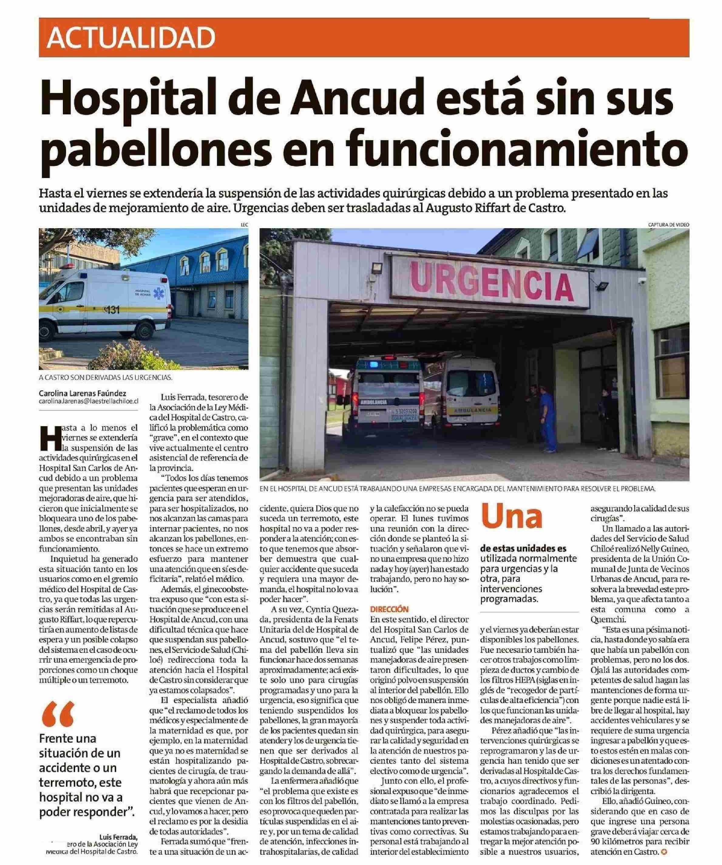 | Título: | Hospital de Ancud está sin sus pabellones en funcionamiento |