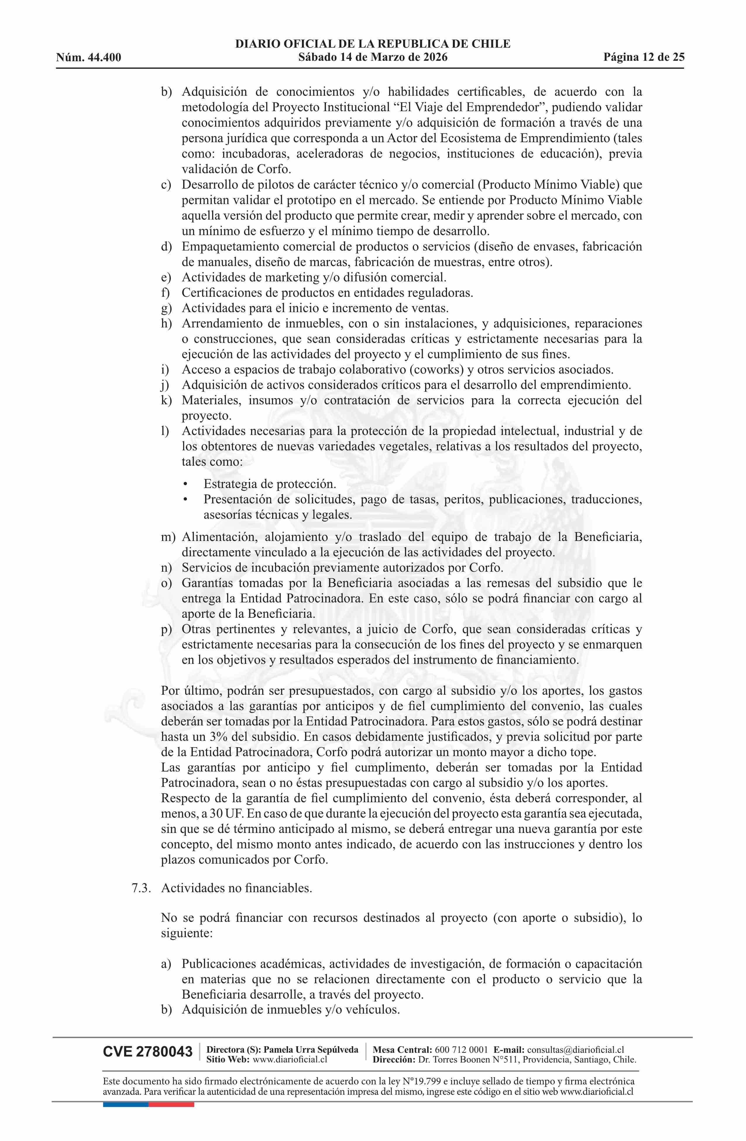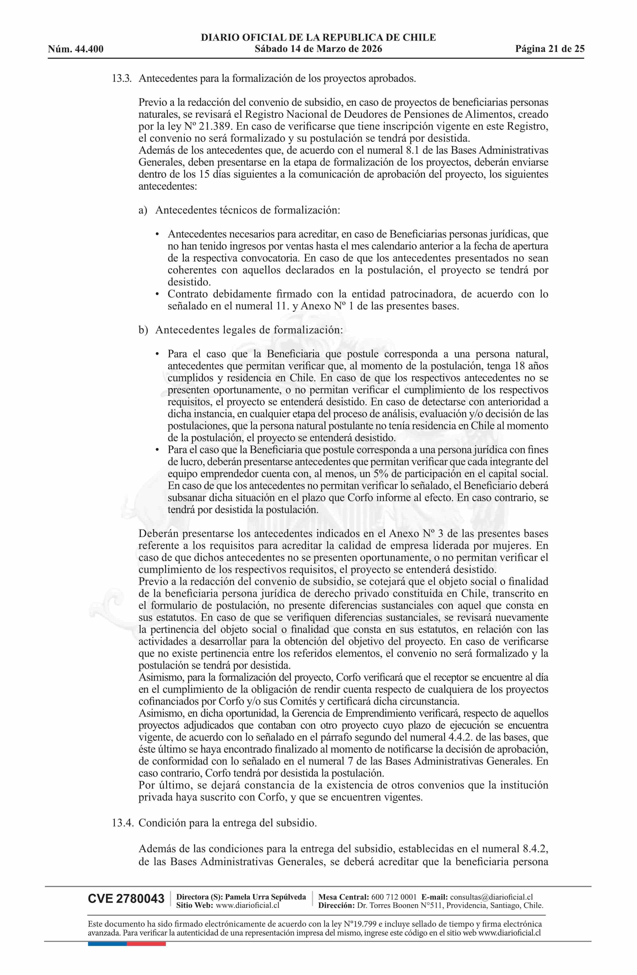 Título: Resolución exenta número 264, de 2026.- Modifica bases del instrumento de financiamiento denominado Semilla Inicia para Empresas Lideradas por Mujeres y aprueba su nuevo texto