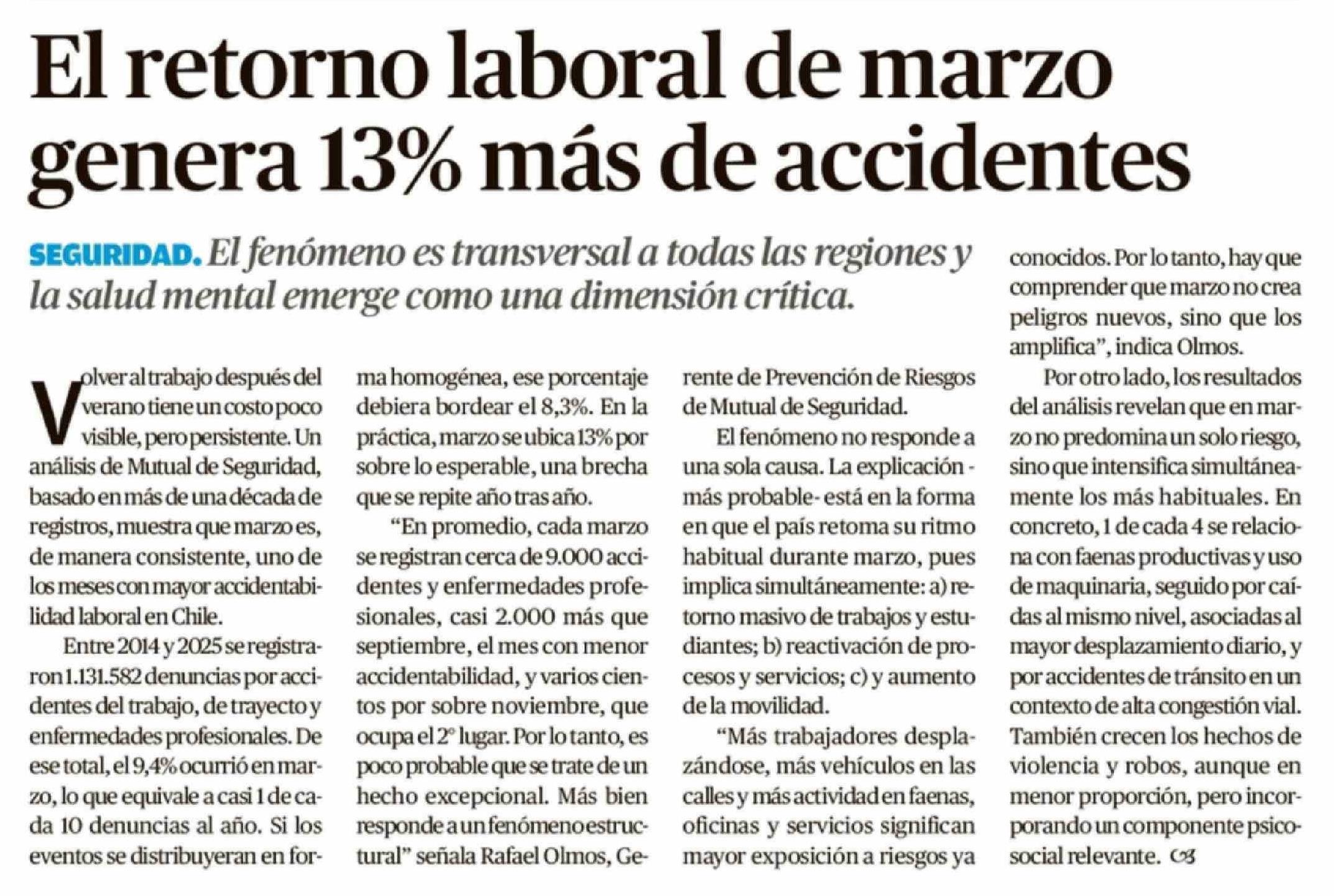 El retorno laboral de marzo genera 13% más de accidentes 25-03-2026 Crónica de Chillán |