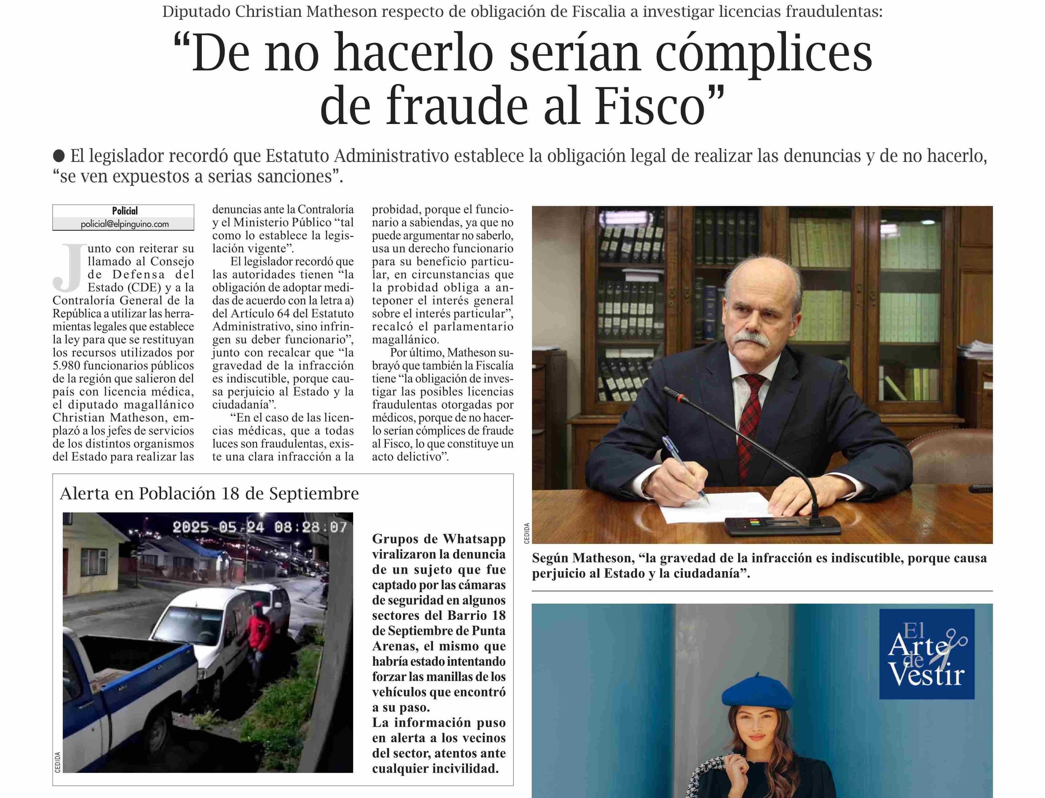“De no hacerlo serían cómplices de fraude al Fisco 25-05-2025 El Pingüino |