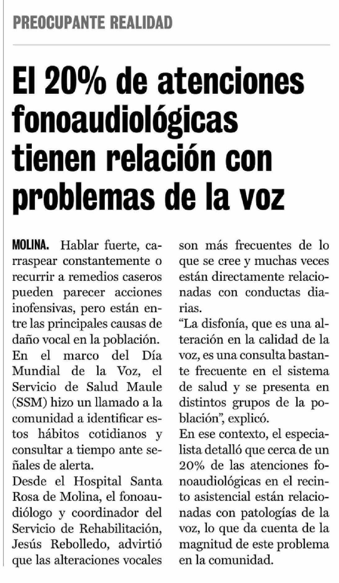El 20% de atenciones fonoaudiológicas tienen relación con problemas de la voz 16-04-2026 La Prensa de Curicó |