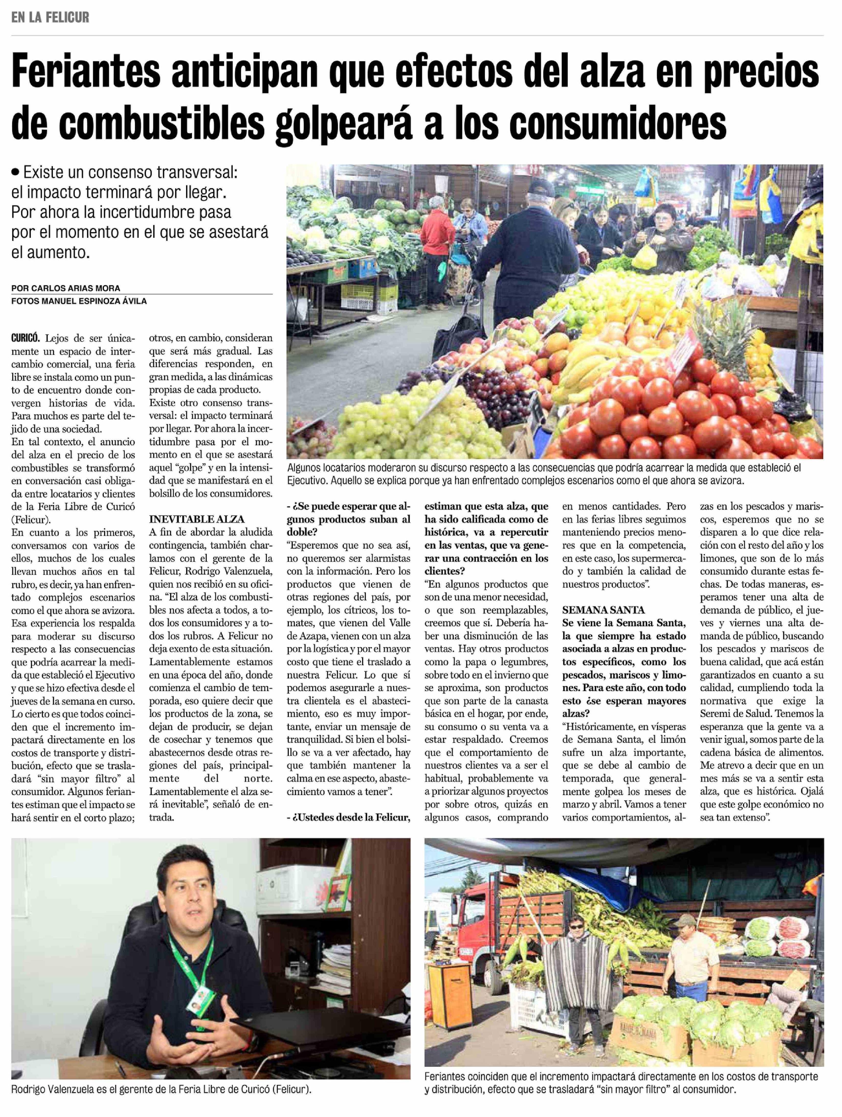 | Título: | Feriantes anticipan que efectos del alza en precios de combustibles golpeará a los consumidores |
