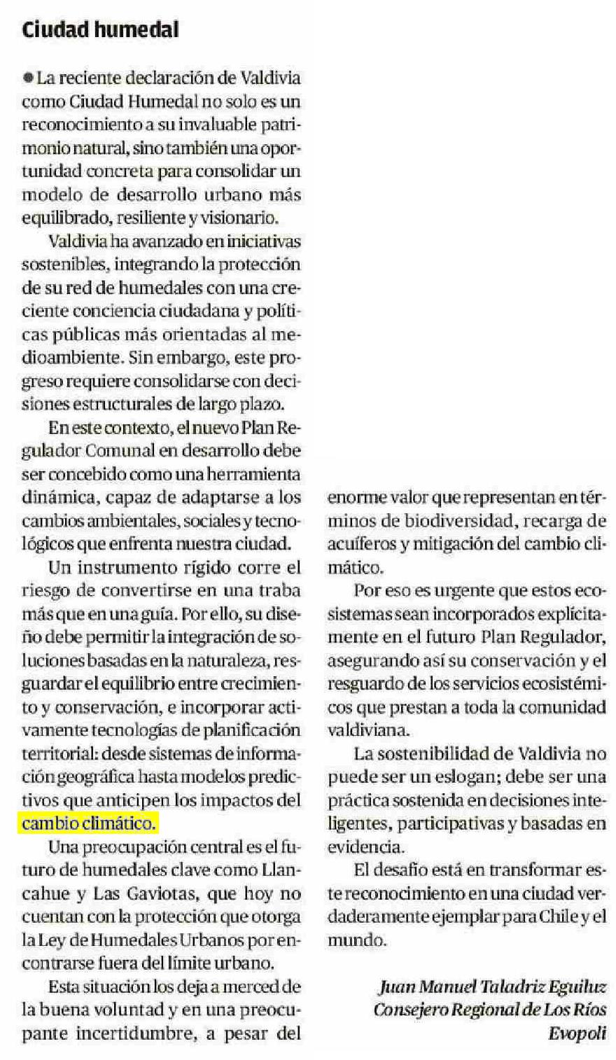 Ciudad humedal 14-06-2025 Diario Austral Región de Los Ríos |