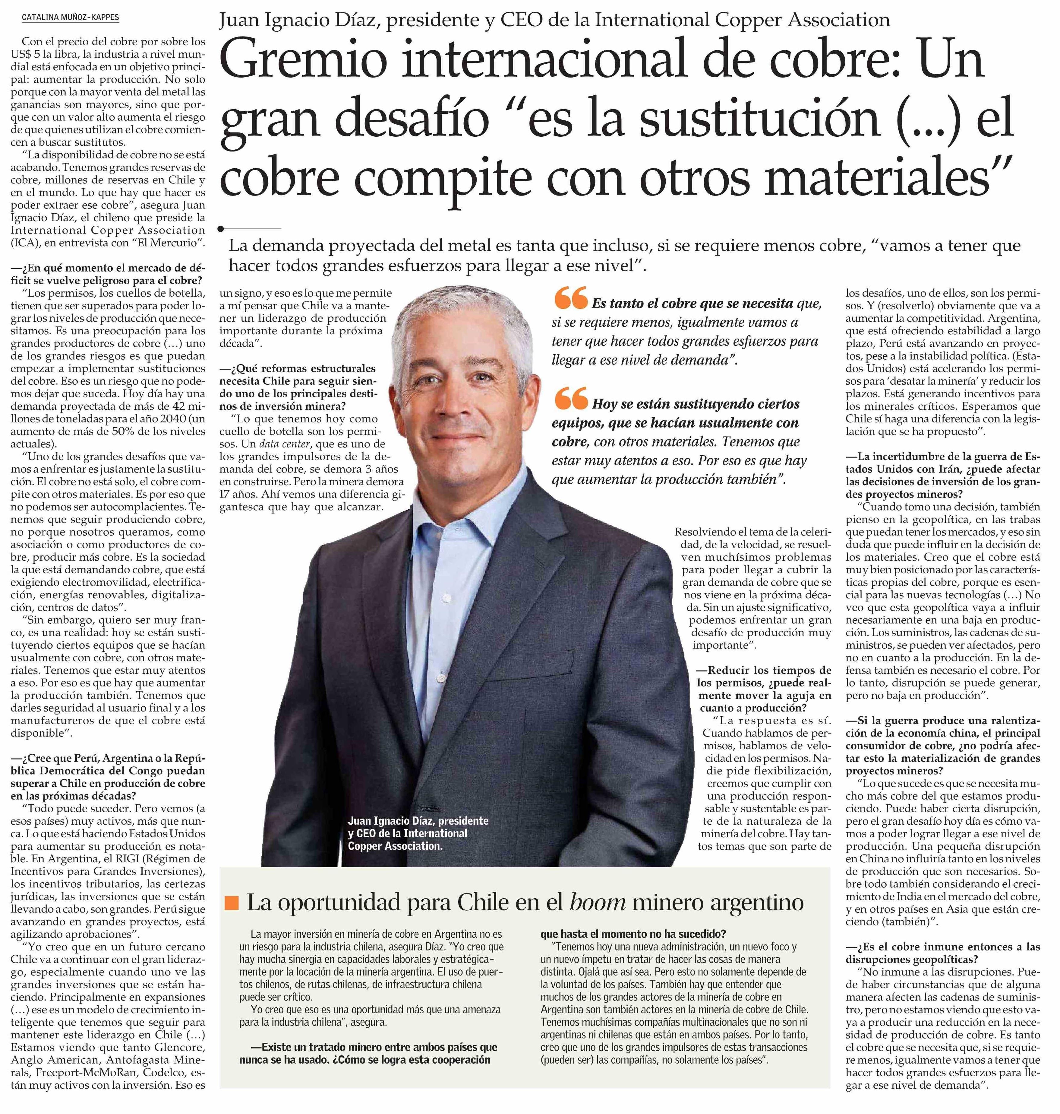 Título: Gremio internacional de cobre: Un gran desafío “es la sustitución (...) el cobre compite con otros materiales”