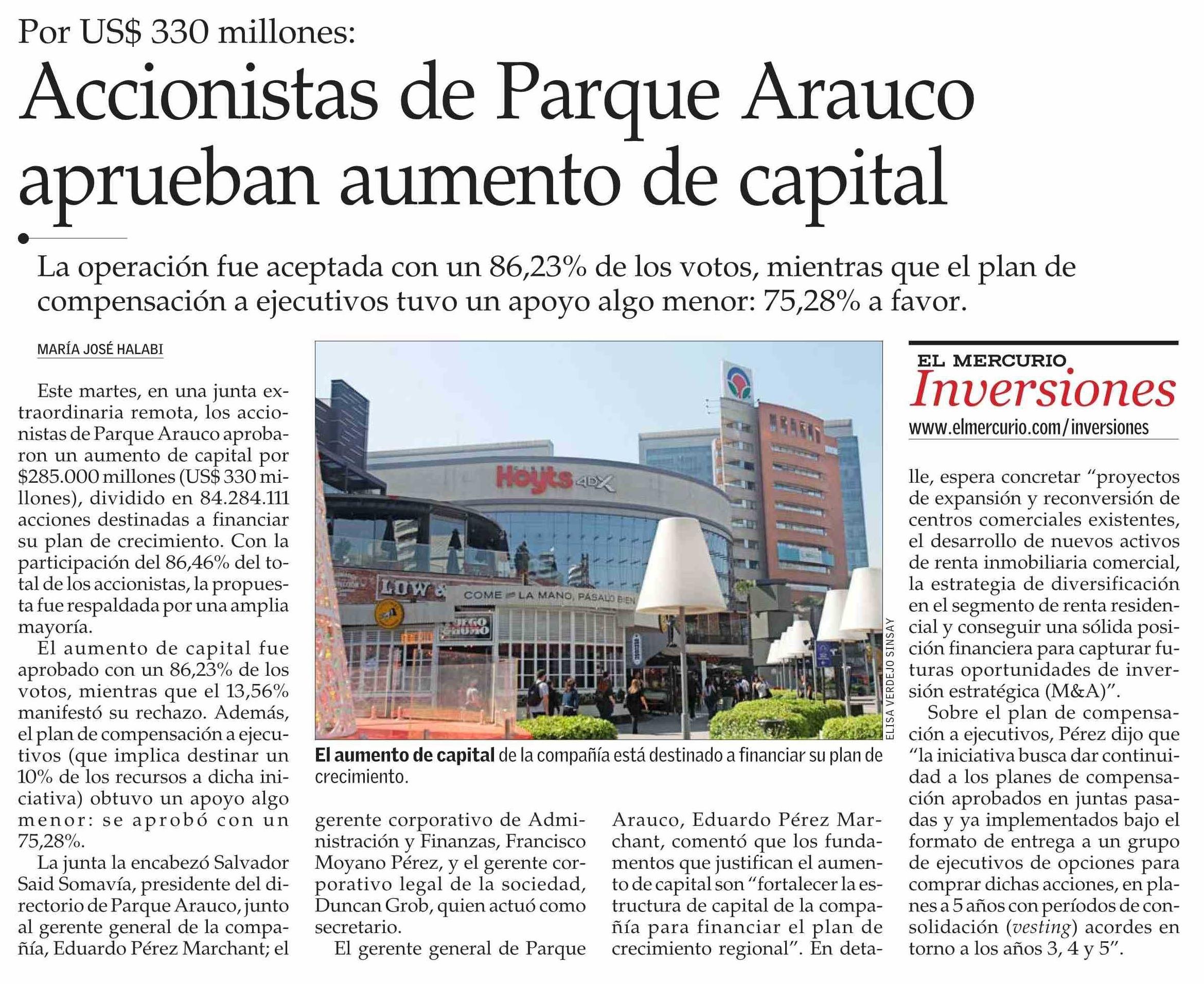 | Título: | Accionistas de Parque Arauco aprueban aumento de capital |