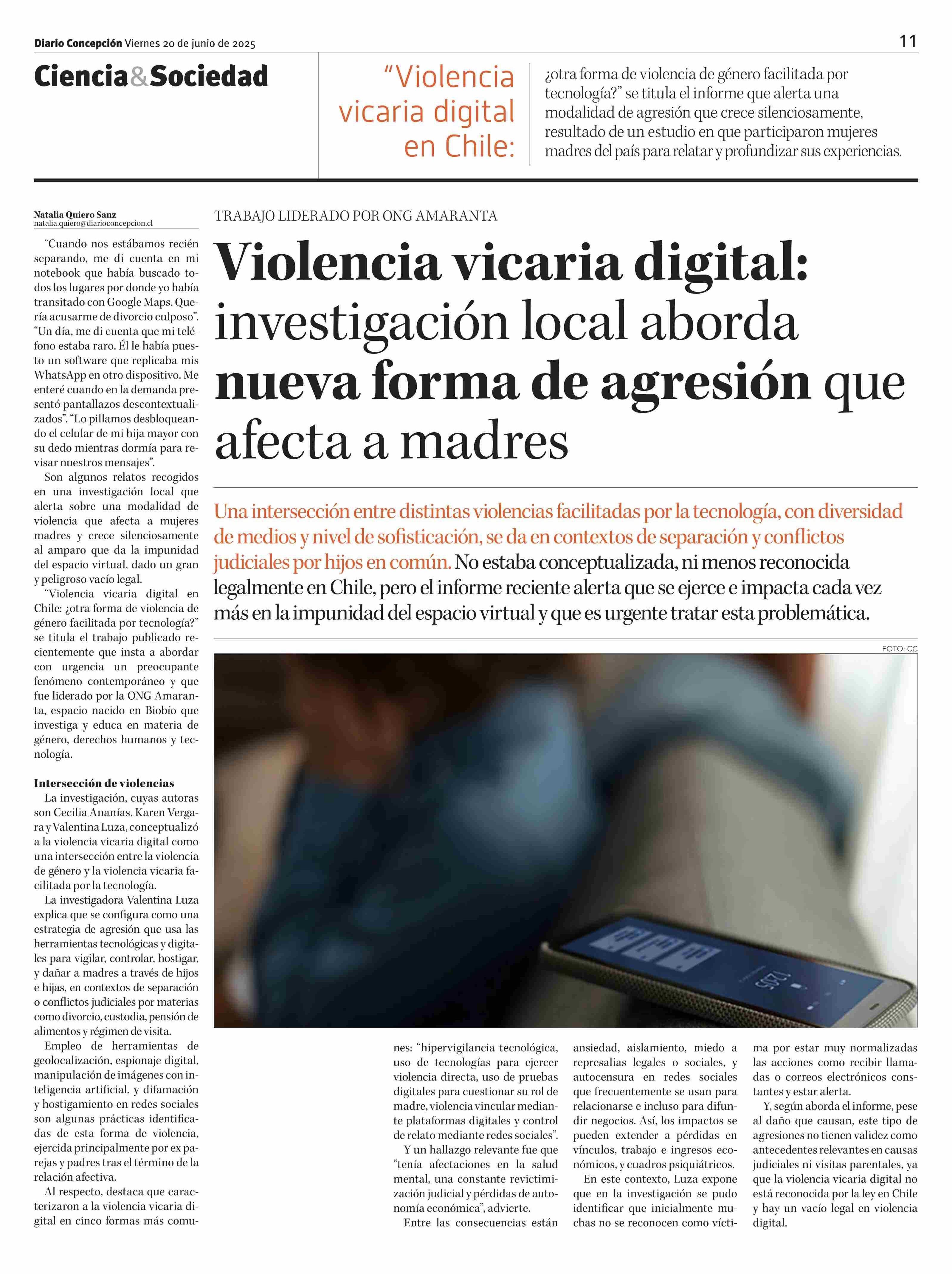 Violencia vicaria digital: investigación local aborda nueva forma de agresión que afecta a madres 20-06-2025 Diario Concepción |
