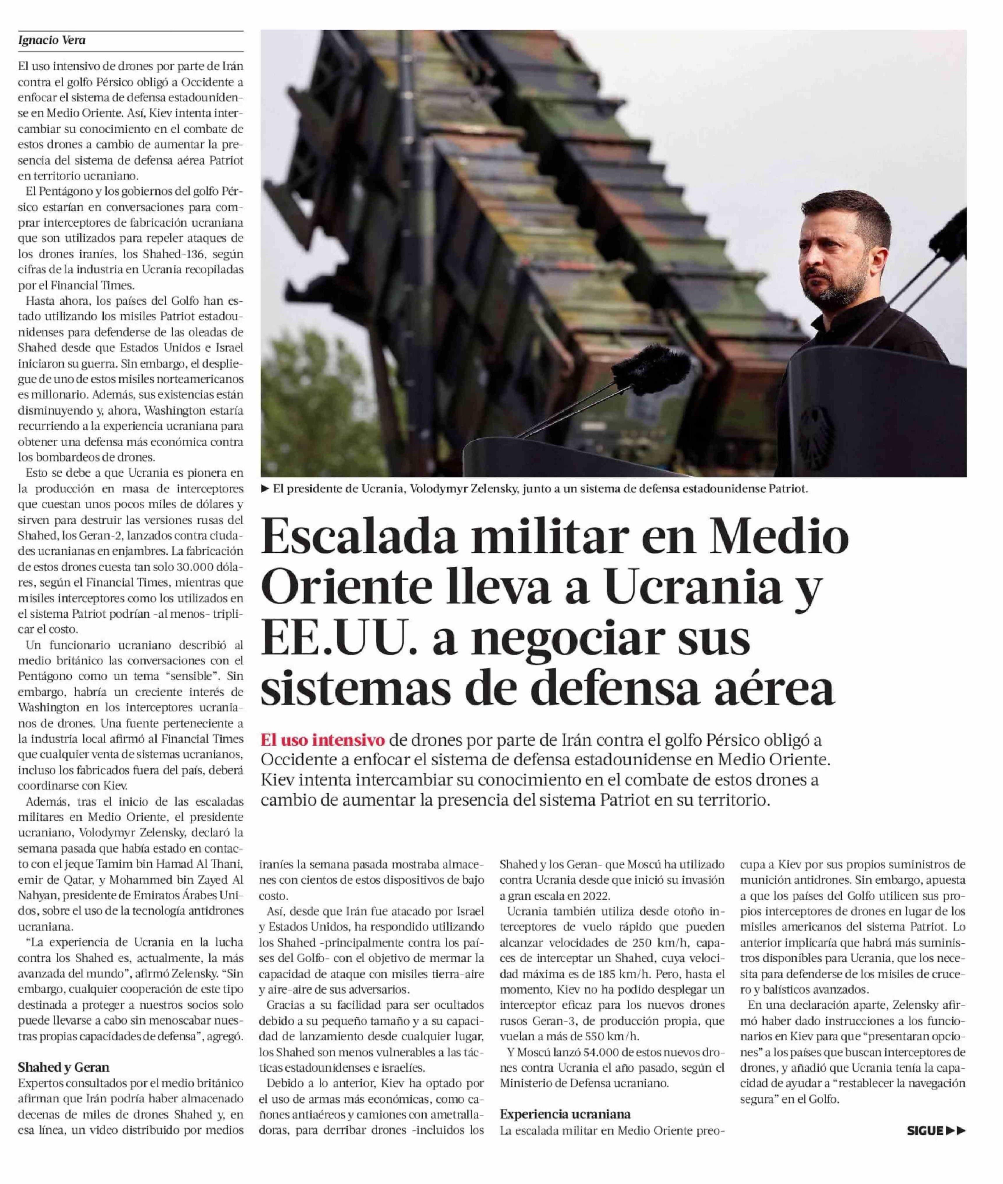 | Título: | Escalada militar en Medio Oriente lleva a Ucrania y EE.UU. a negociar sus sistemas de defensa aérea |