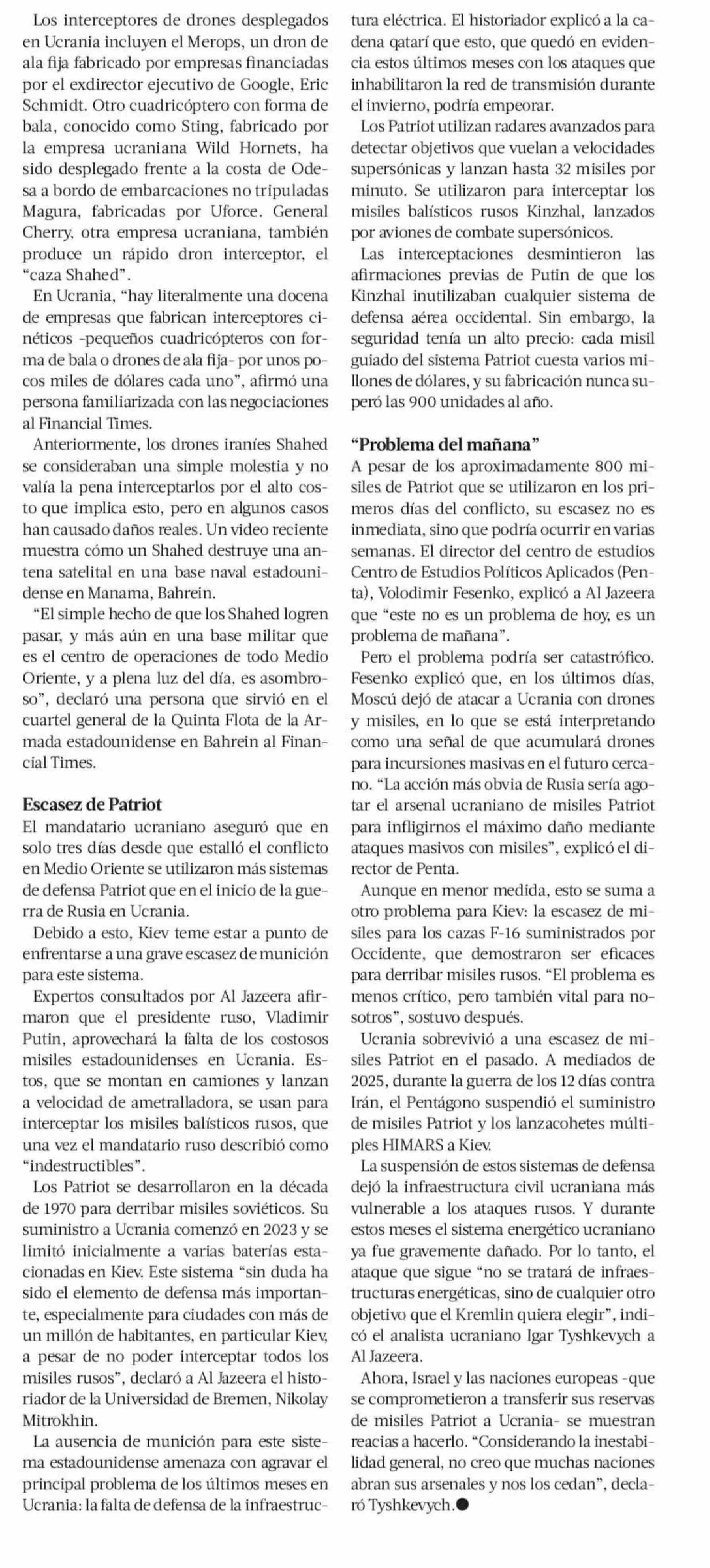 Escalada militar en Medio Oriente lleva a Ucrania y EE.UU. a negociar sus sistemas de defensa aérea 10-03-2026 La Tercera |