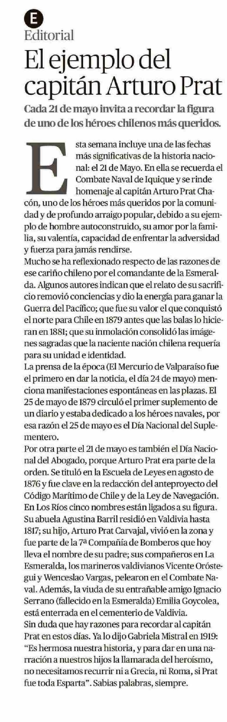 EDITORIAL: El ejemplo del capitán Arturo Prat 19-05-2025 Diario Austral Región de Los Ríos |
