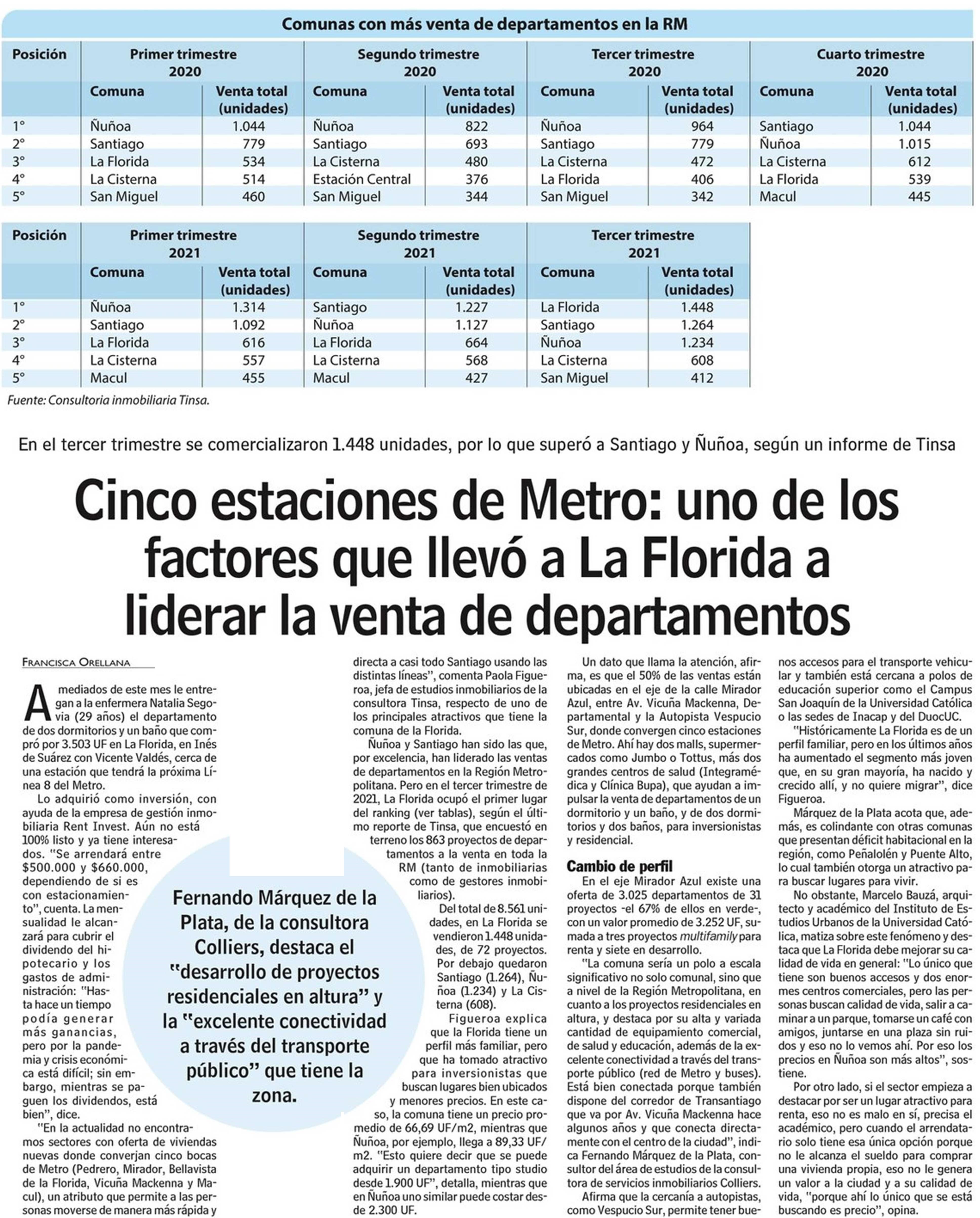 Cinco estaciones de Metro: uno de los factores que llevó a La Florida a liderar la venta de departamentos 07-12-2021 Las Últimas Noticias |