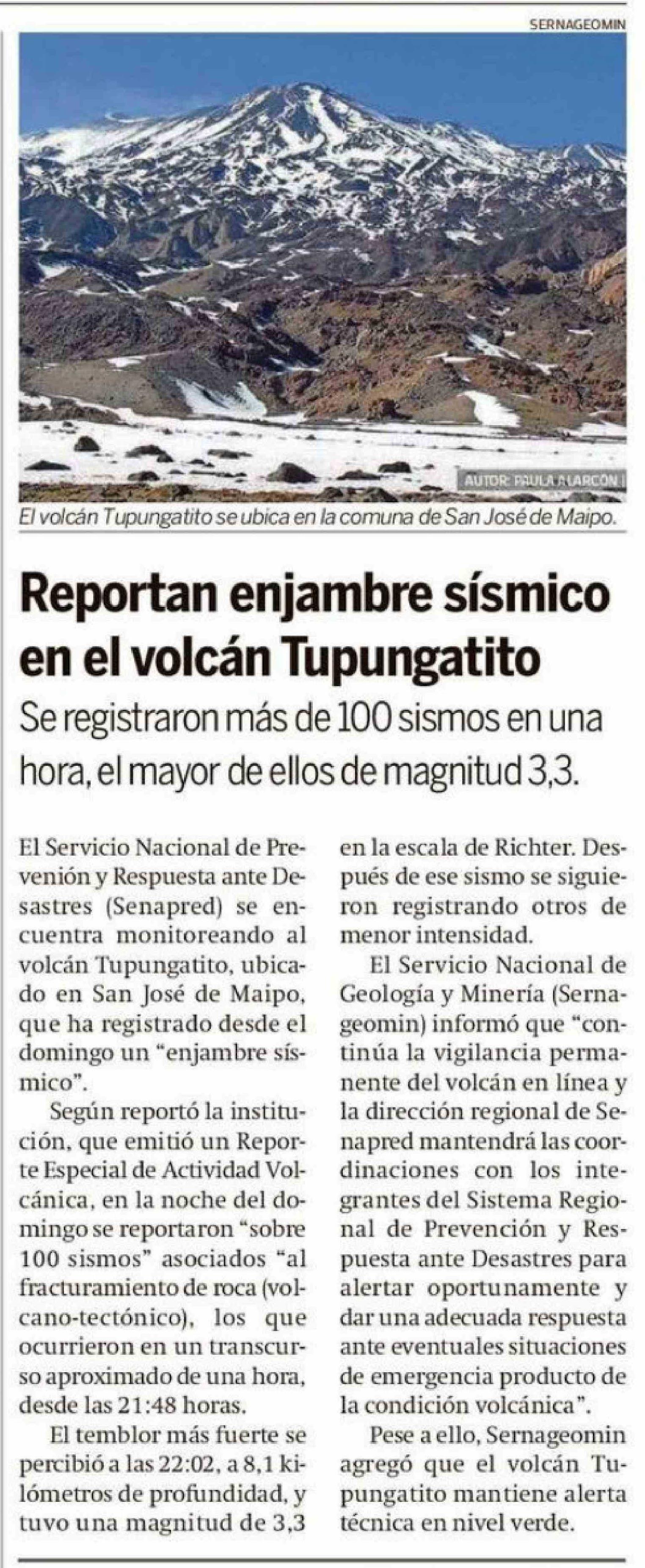 | Título: | Reportan enjambre sísmico en el volcan Tupungatito |