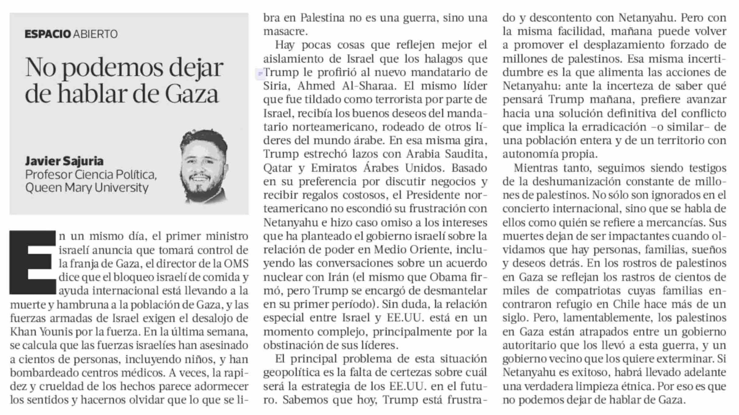 Columnas de Opinión: No podemos dejar de hablar de Gaza 20-05-2025 La Tercera |