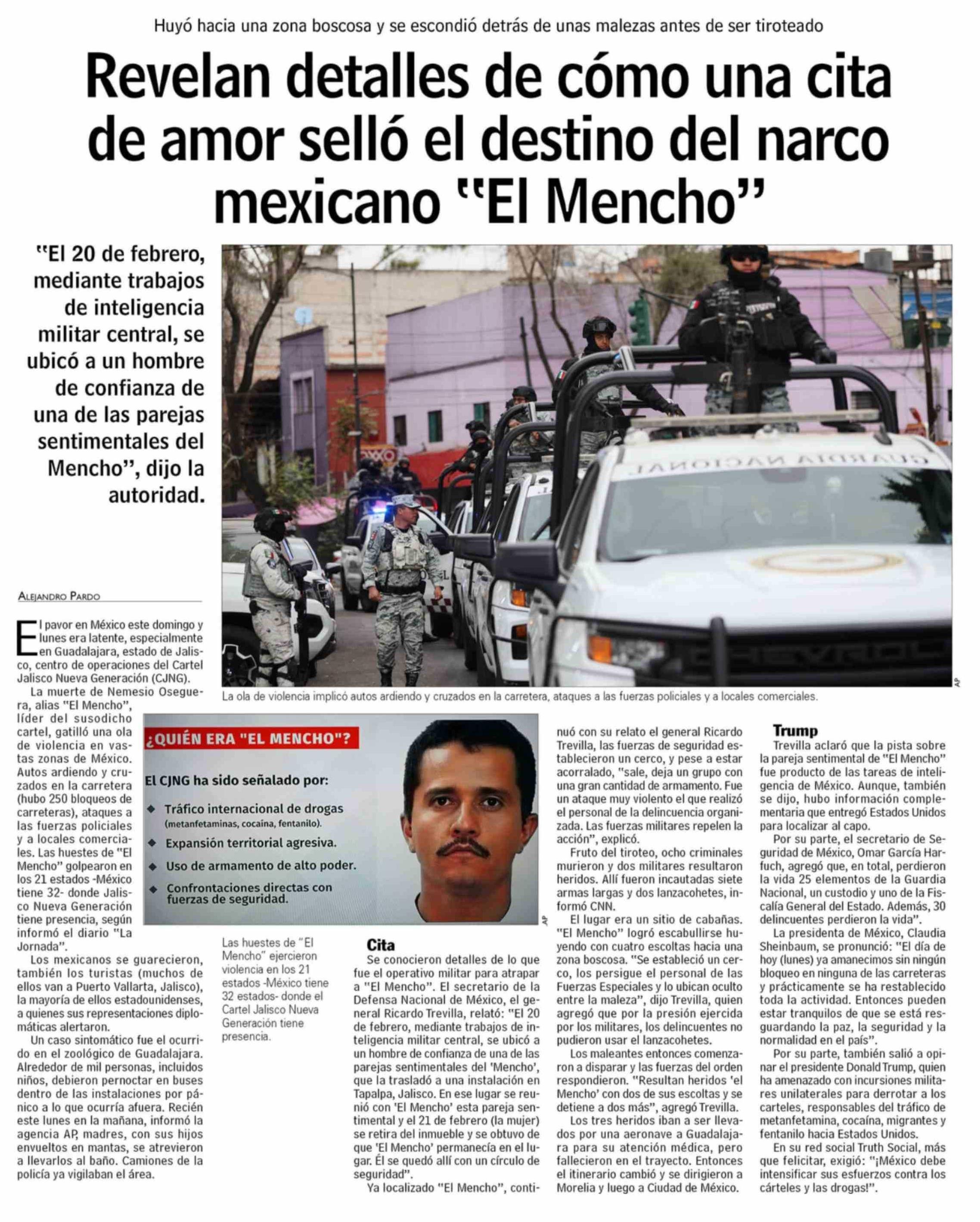 Revelan detalles de cómo una cita de amor selló el destino del narco mexicano "El Mencho" 24-02-2026 Las Últimas Noticias |
