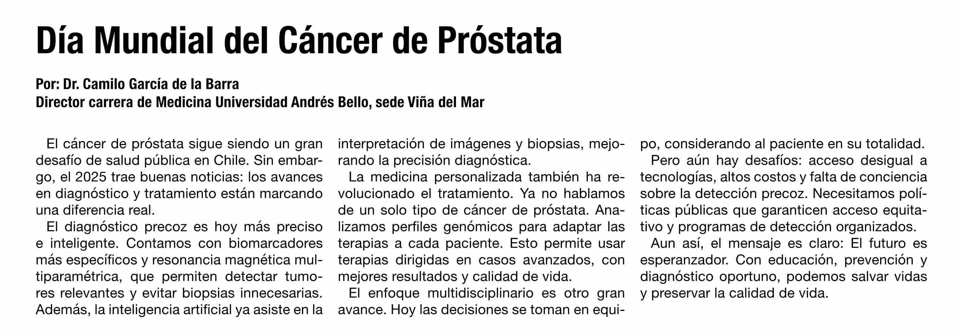 | Título: | COLUMNAS DE OPINIÓN: Día Mundial del Cáncer de Próstata |