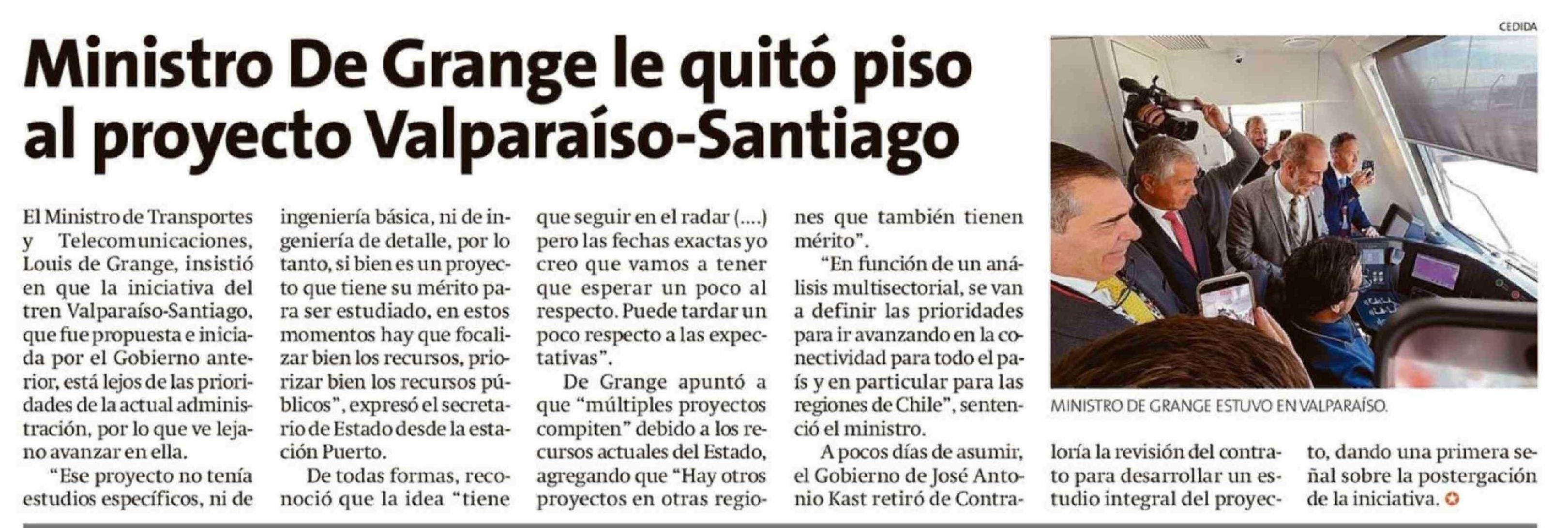 Ministro De Grange le quitó piso al proyecto Valparaíso-Santiago 23-04-2026 La Estrella de Valparaíso |
