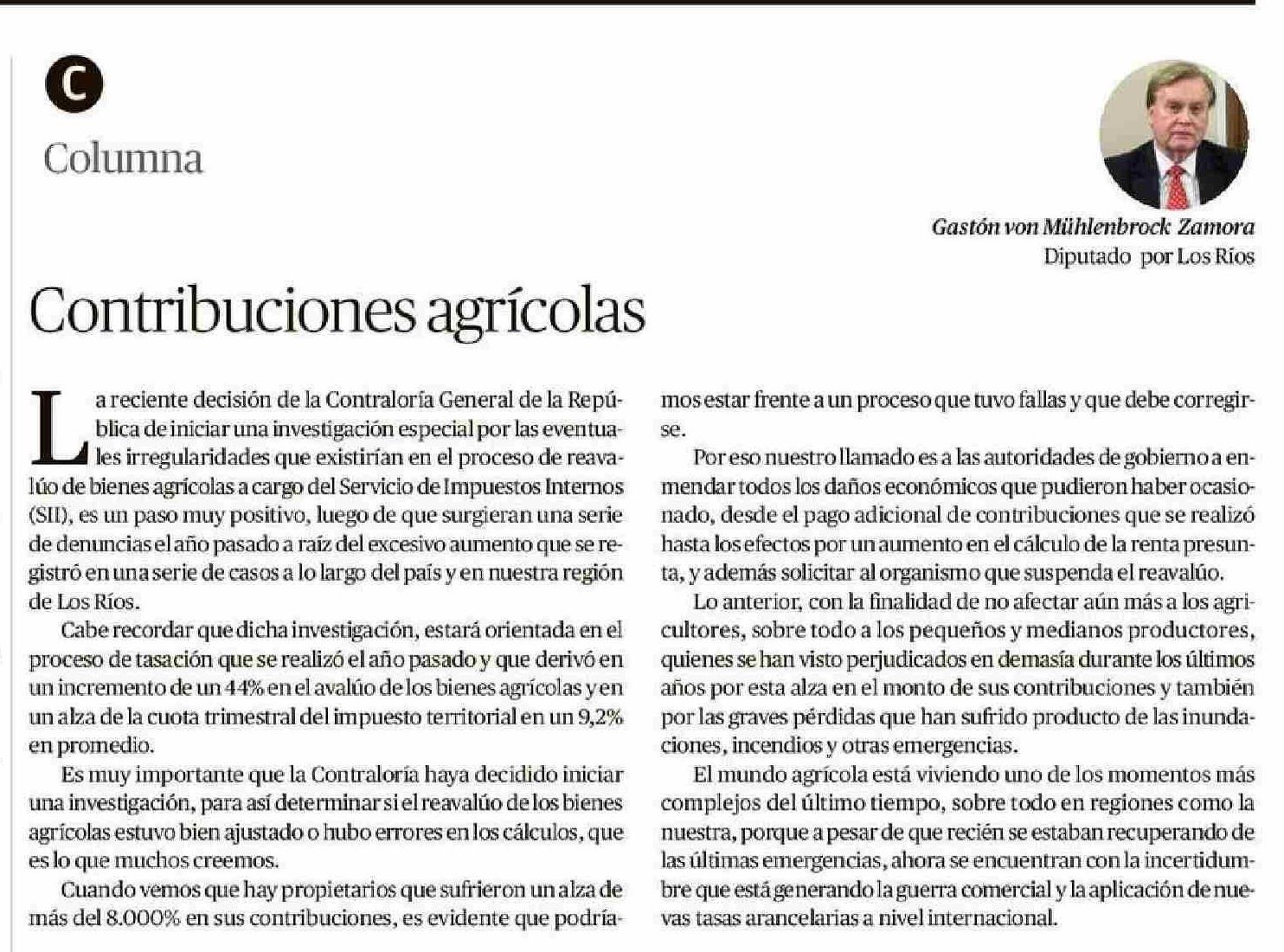 Columnas de Opinión: Contribuciones agrícolas 26-04-2025 Diario Austral Región de Los Ríos |